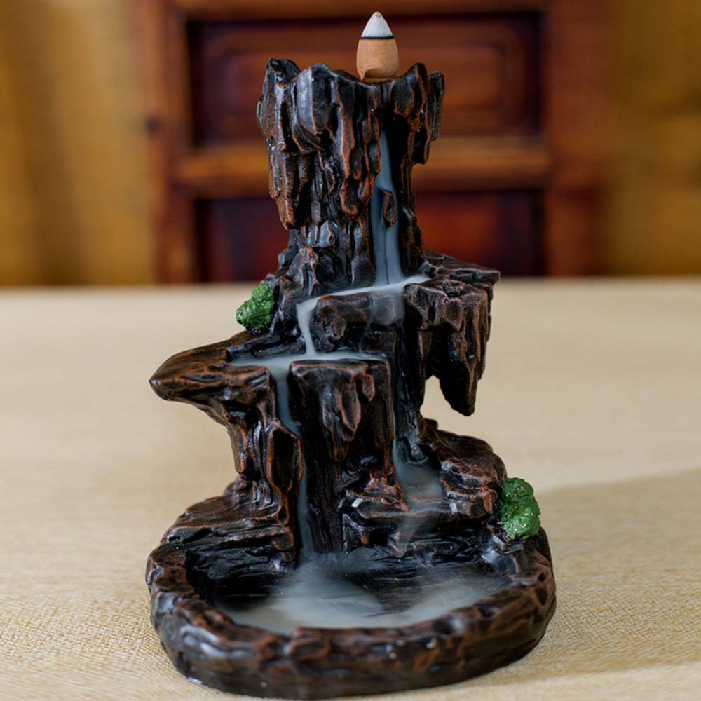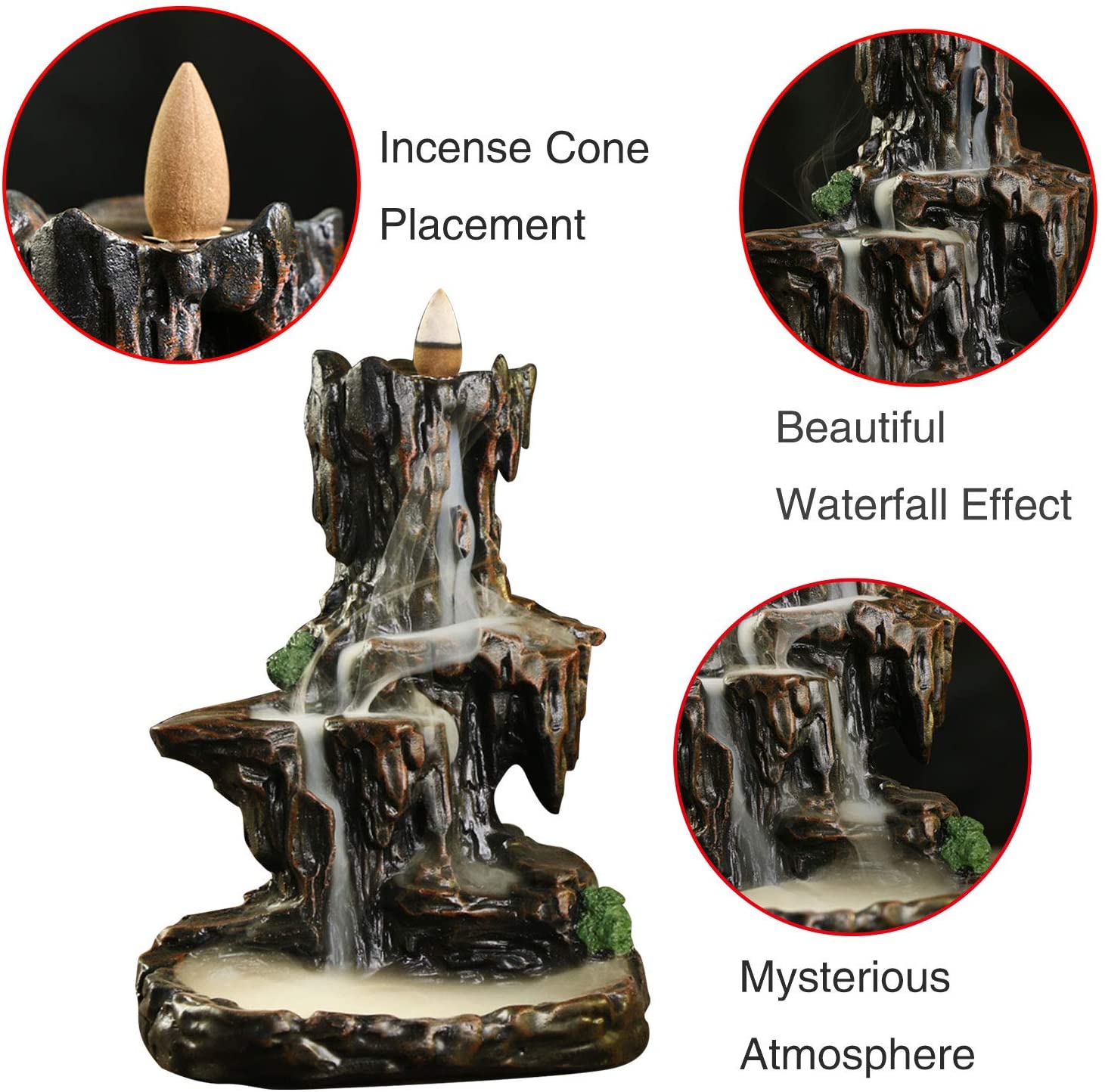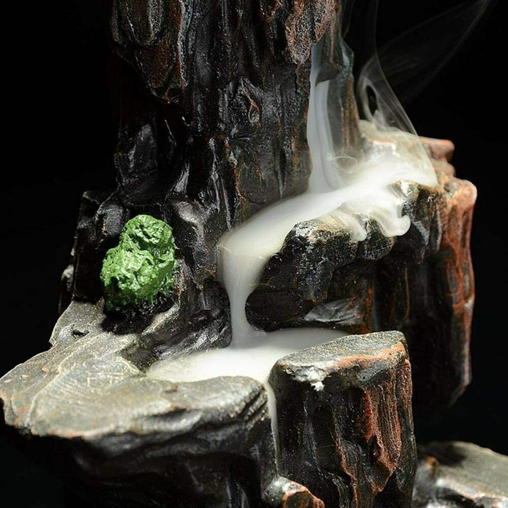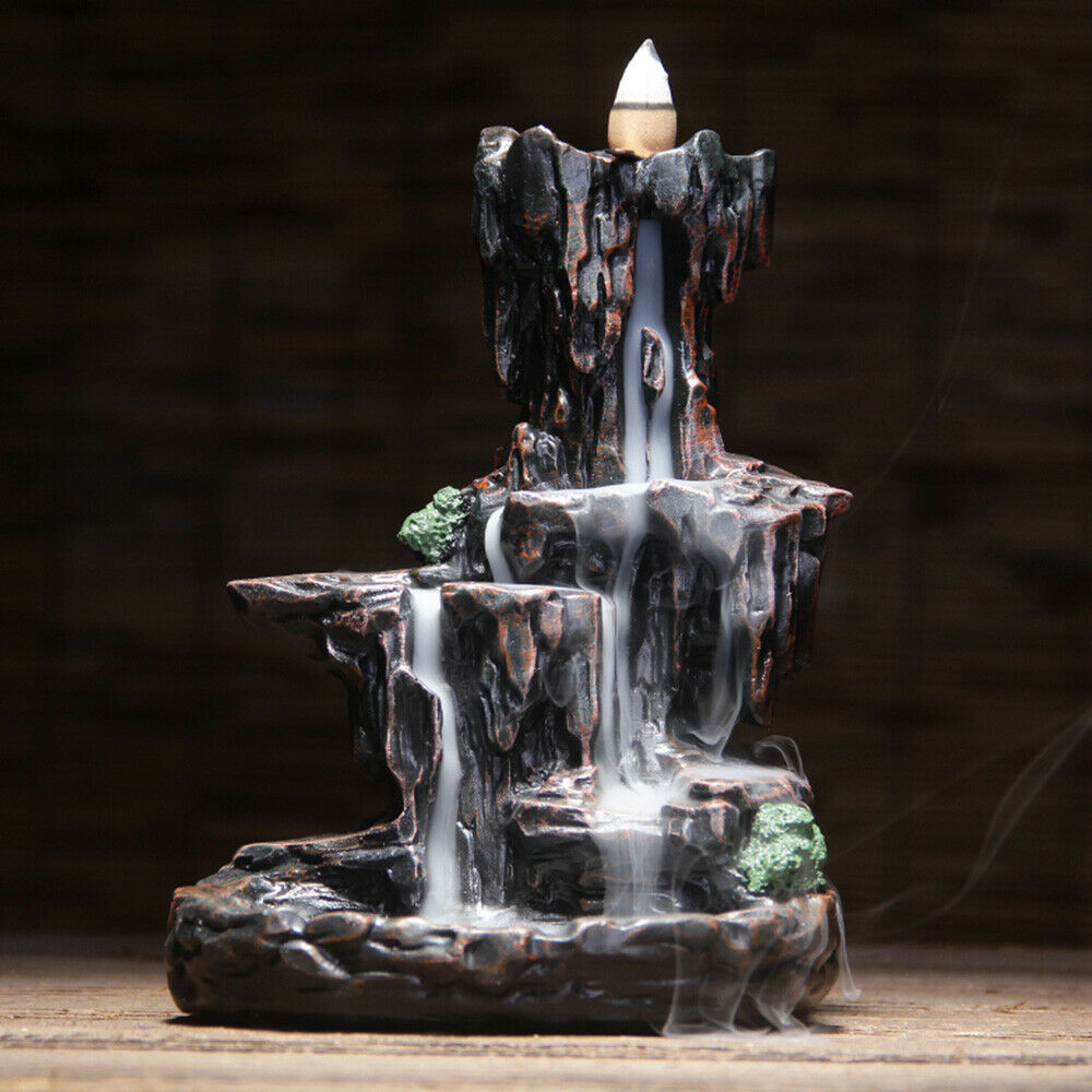 Resin Mountain Waterfall Backflow Smoke Incense Burner Censer Holder Free 100 Cones