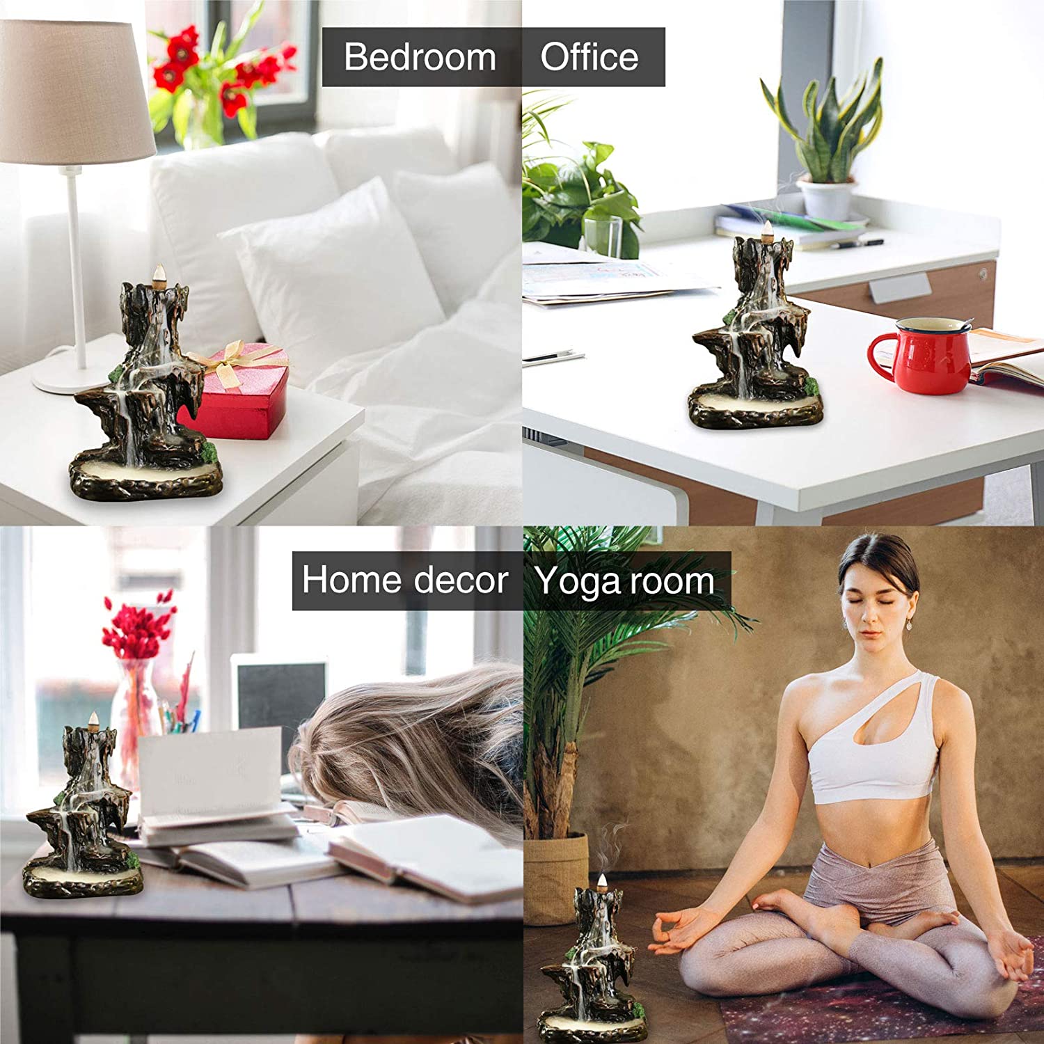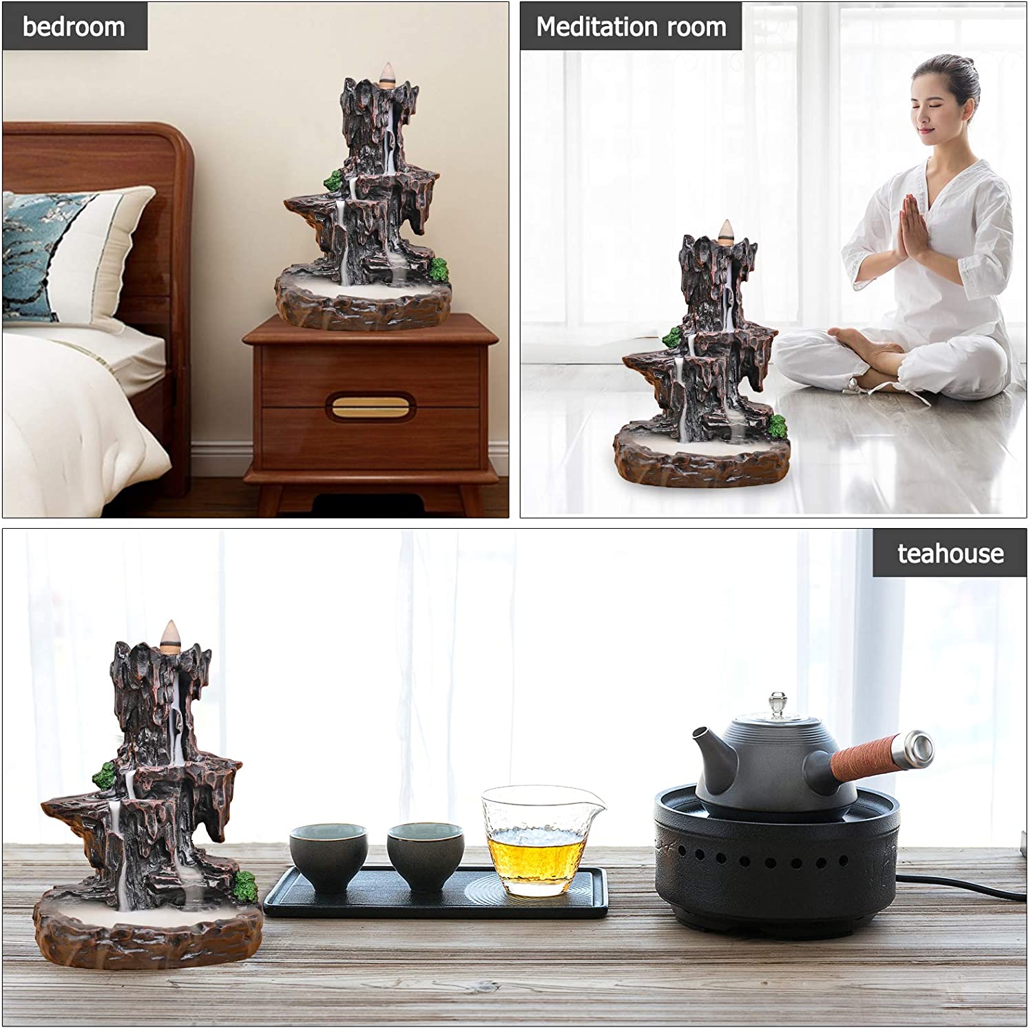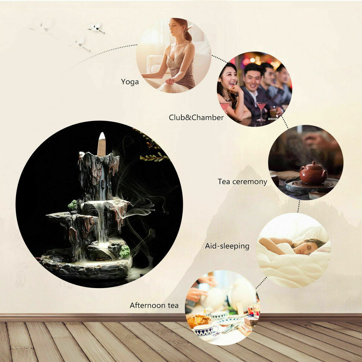 Resin Mountain Waterfall Backflow Smoke Incense Burner Censer Holder Free 100 Cones