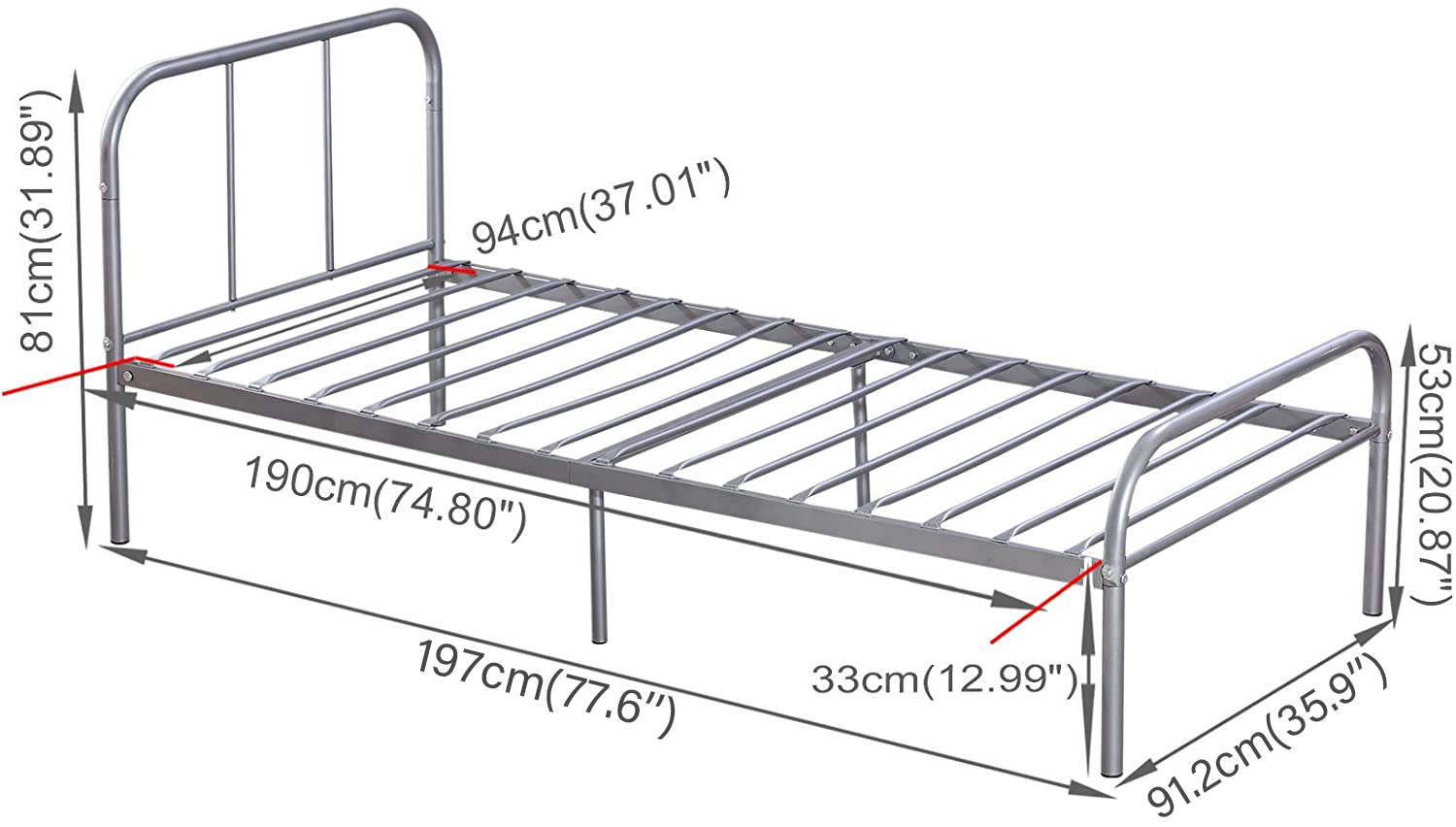 1970*992*805MM 银色 铁床架 美国款