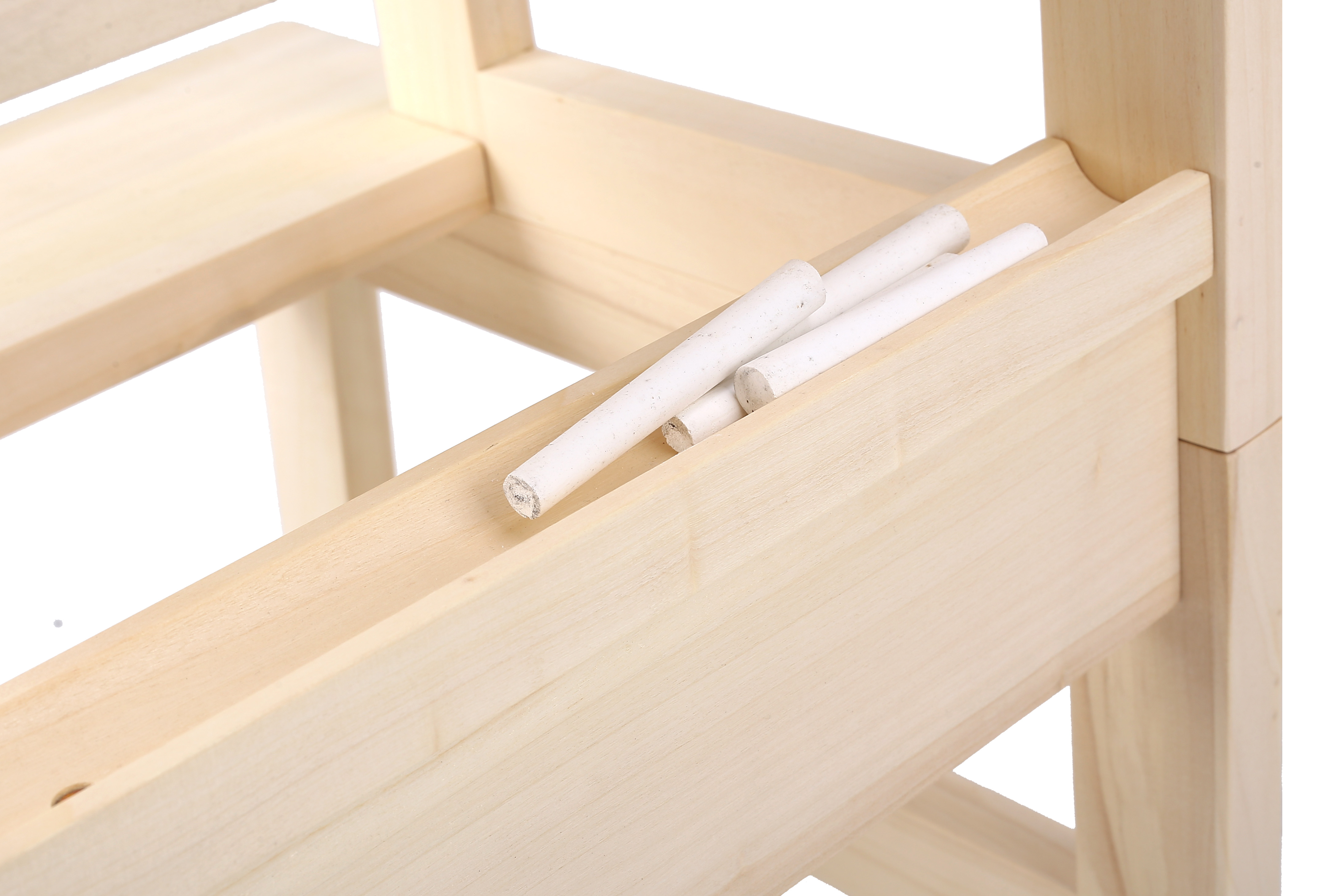 The chalk holder are locate in the middle of the chair