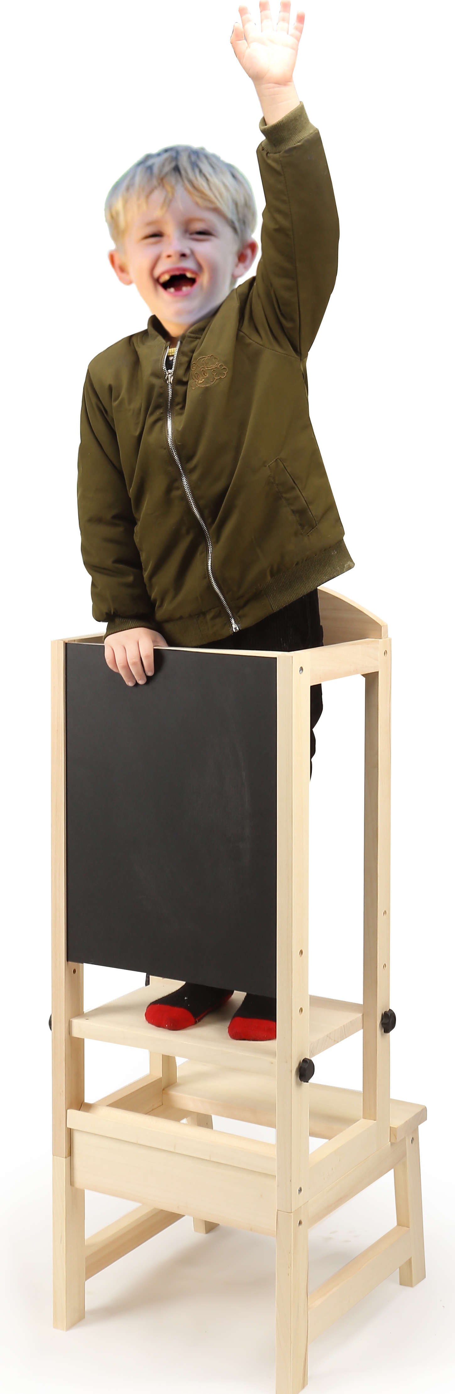 Kids can climb up to wash hand, wash dish and help kitchen errands.