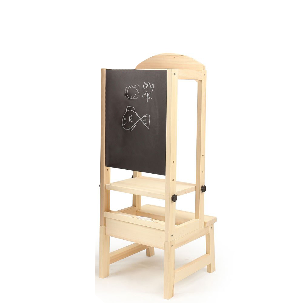 Kids kitchen helper with black drawing board and white drawing board