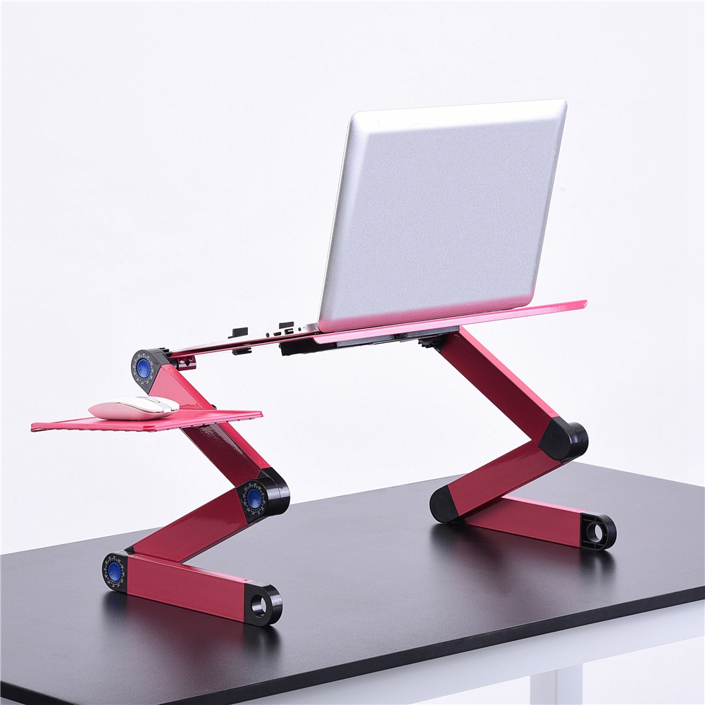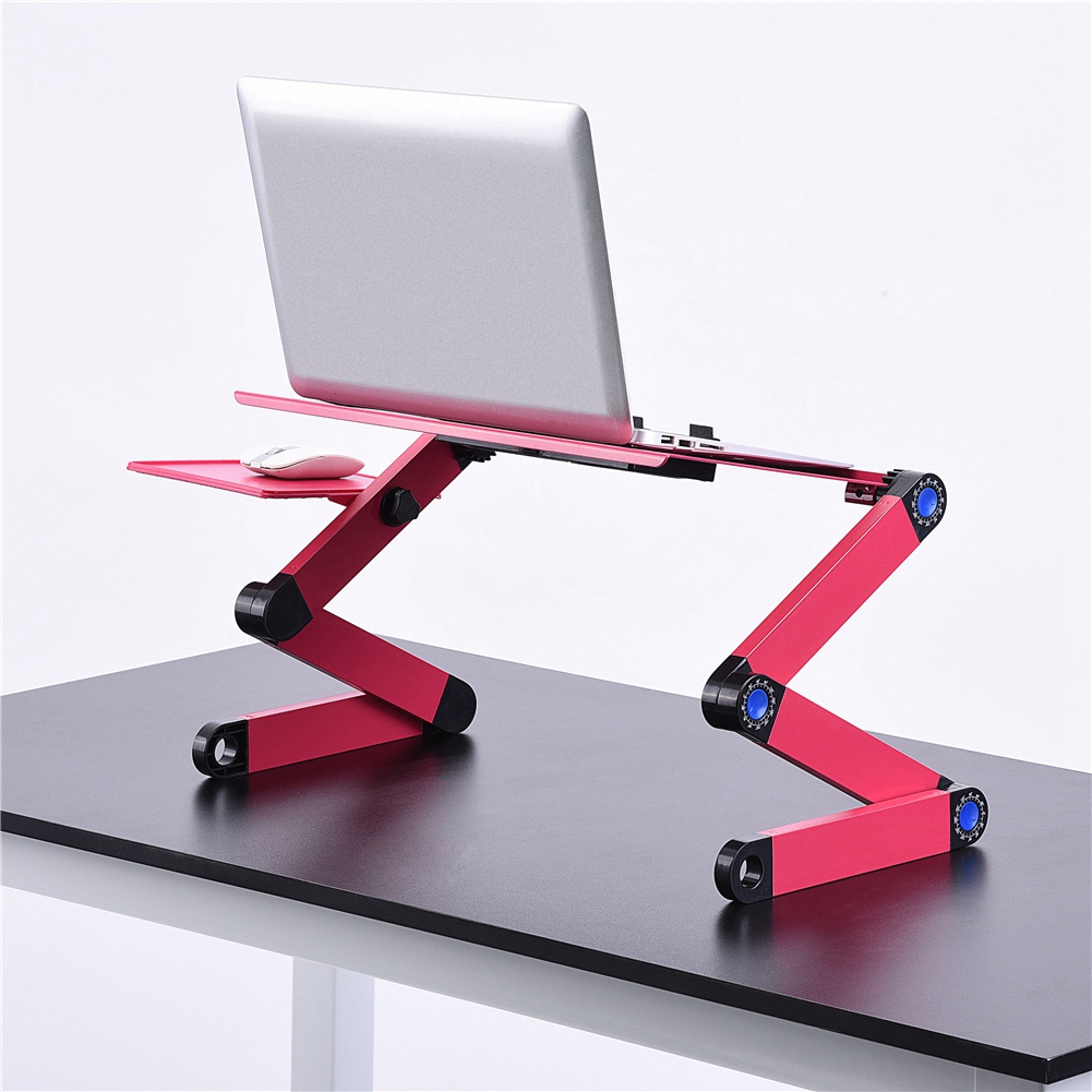 This aluminum alloy laptop desk, designed to help create the ideal working positions to promote spinal alignment and good posture, is is ultra-sturdy, firm and durable. And the foldable laptop desk can be adjusted a variety of angle, height and tilt combinations, so that the multi-functional laptop desk can be used as TV dinner tray, sound equipment table, projector table, standing desk platform, standing desk, sit-stand desk, book tray, writing desk and tablet holder.