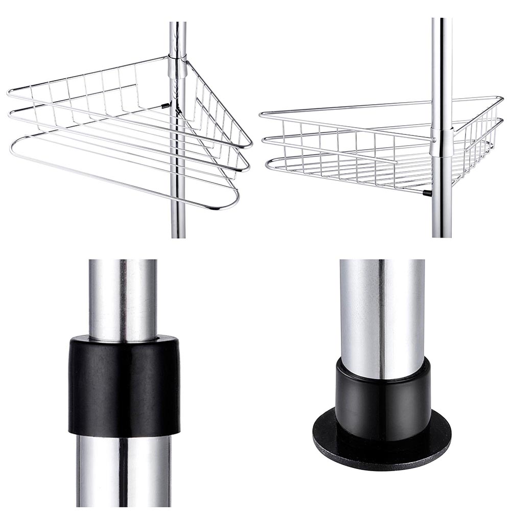 - Durable Construction - Strong   metal pole covered by chrome plated coating for ensuring stability,   durability and scratch & rust resistance; plastic leg cap for providing   slip resistance; each basket with 4.4 Lbs weight capacity for holding   different bath accessories