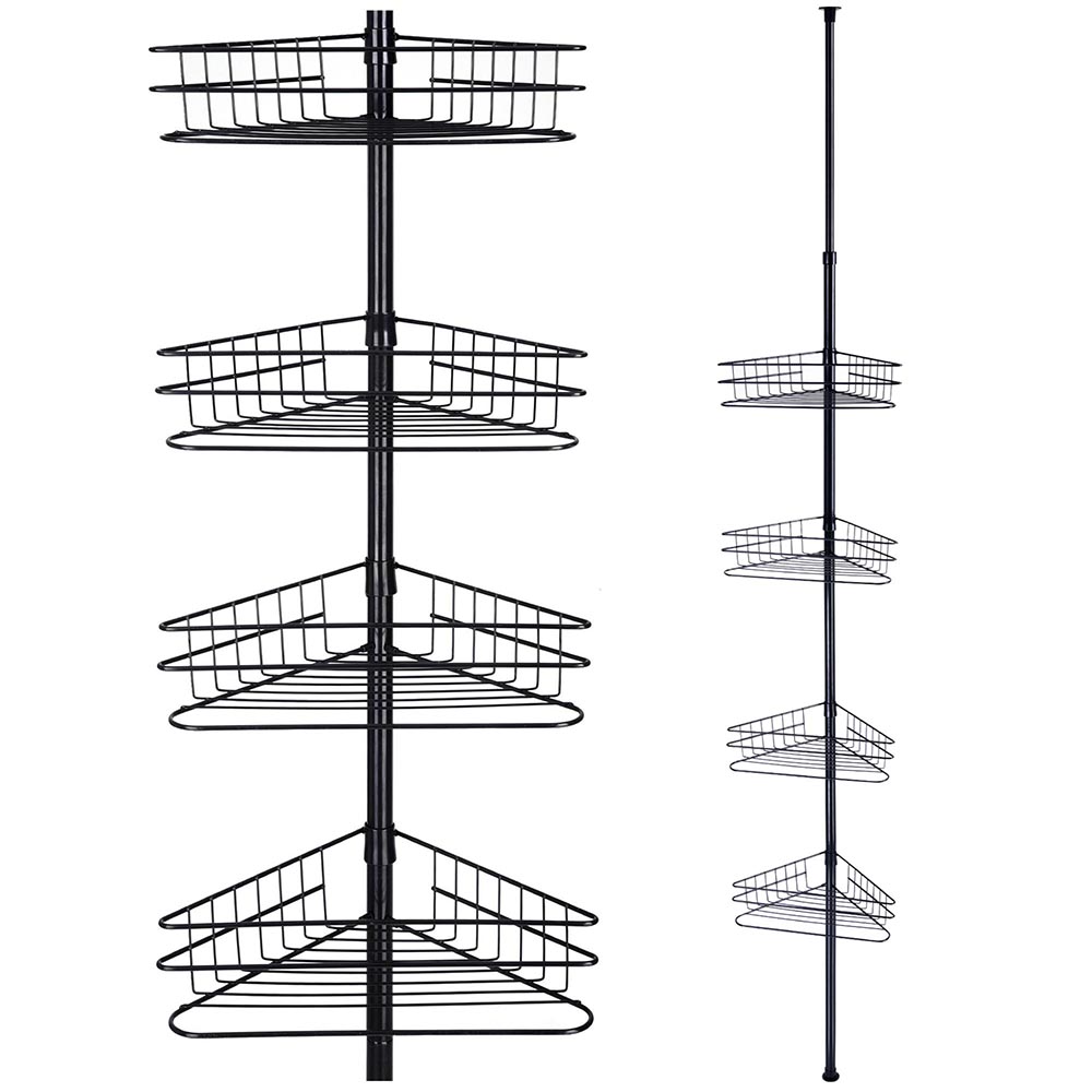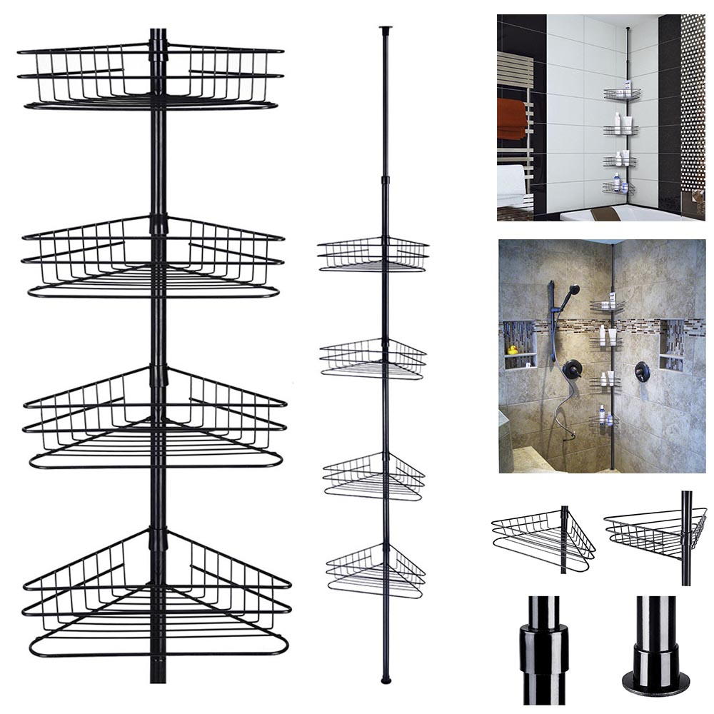 4 Tier Telescopic Shower Caddy Bathroom Corner Shelf Tidy Basket Metal