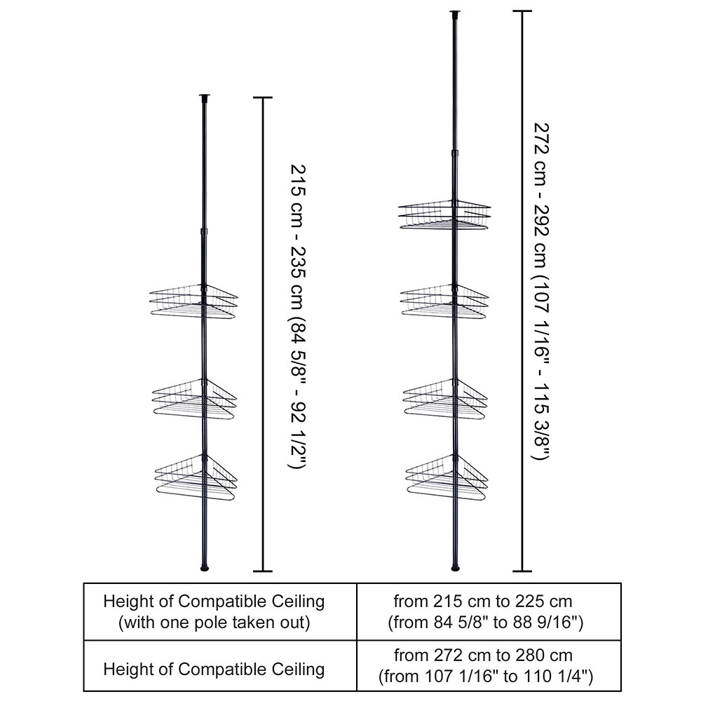 • Tool-free & No Drilling Installation - Simply connecting pole and basket, adjusting the height to fit in the bathroom corner; Owing to sectional pole and built-in spring, no need to drill while installing, easily assemble a convenient and useful shelf all by yourself