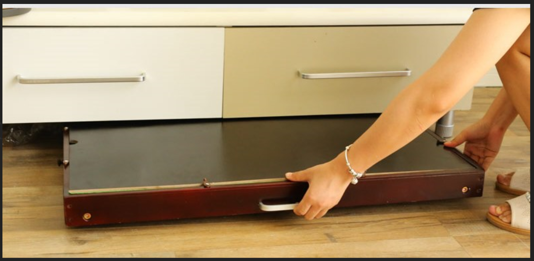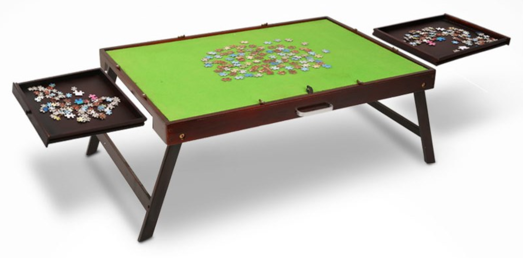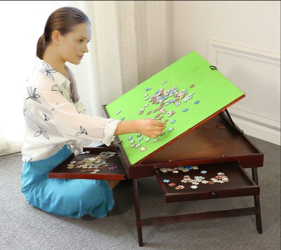 Tilting Folding puzzle storage table with drawers, back saver