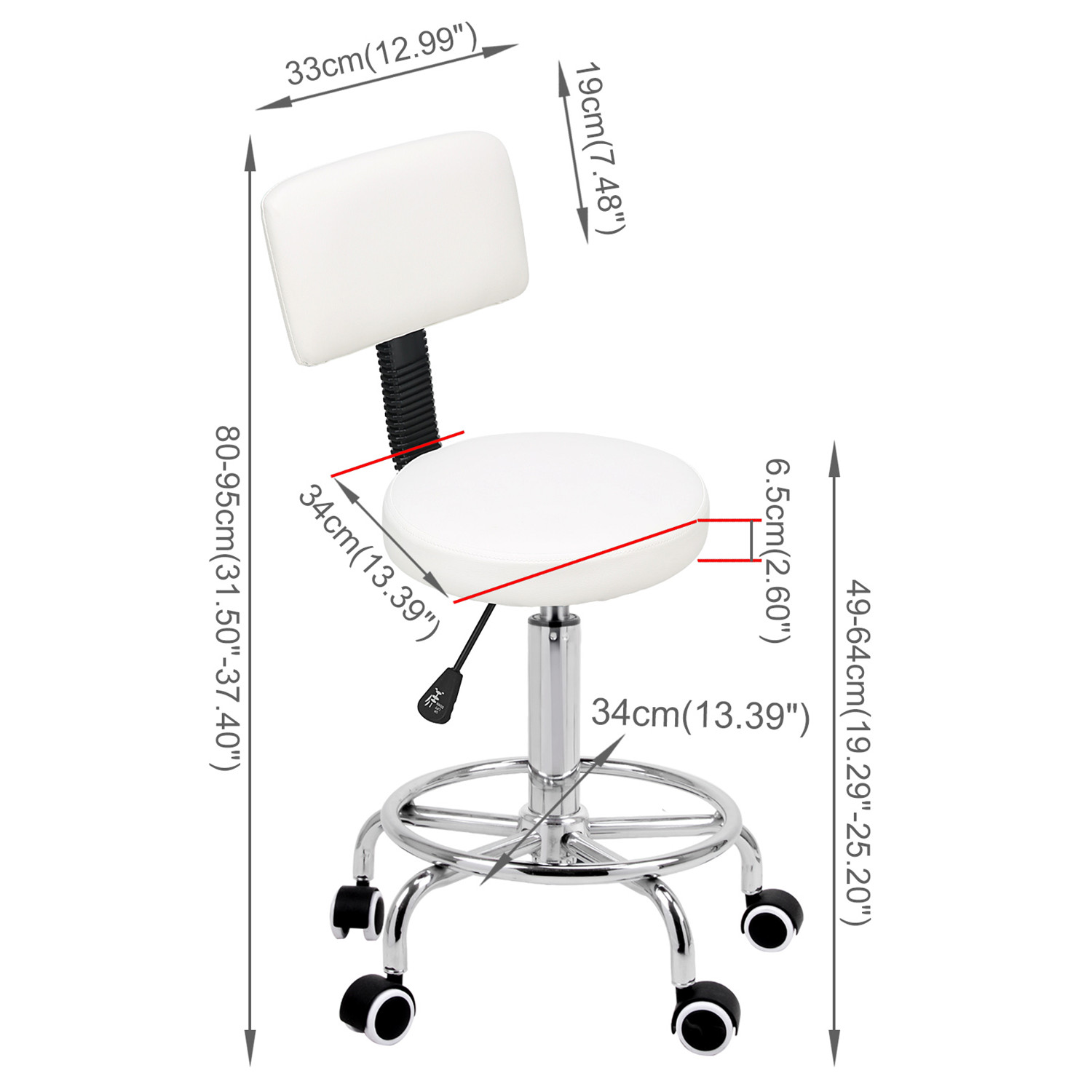 Swivel stool with backrest ensures a correct and comfortable sitting posture (very important to avoid stiffness and pain on shoulder, back and neck).