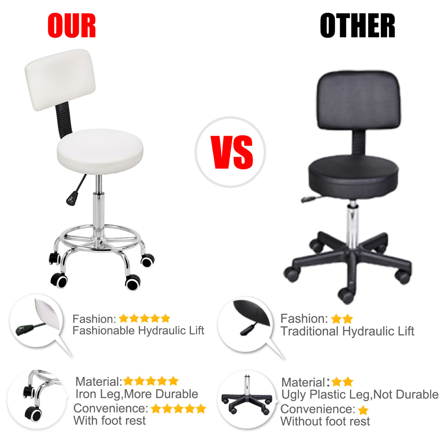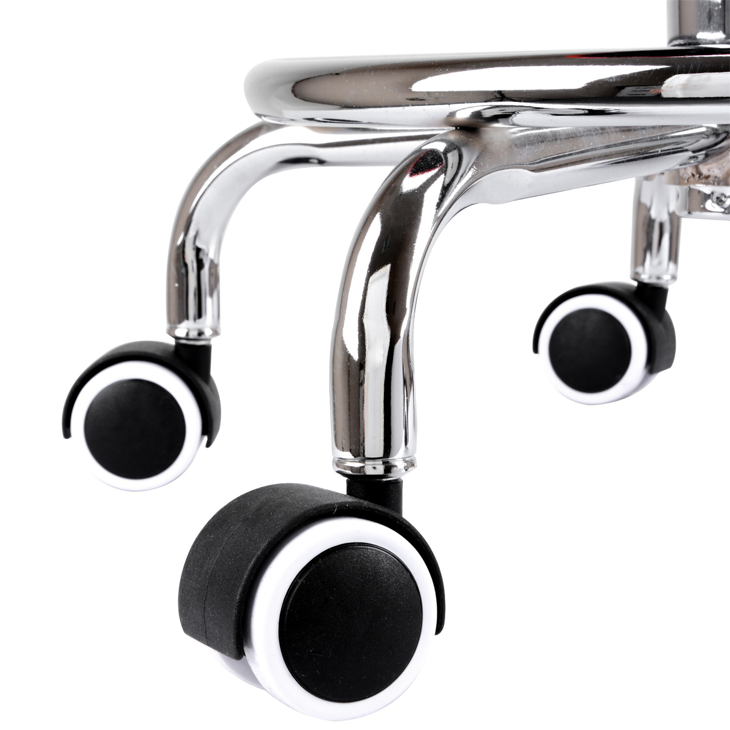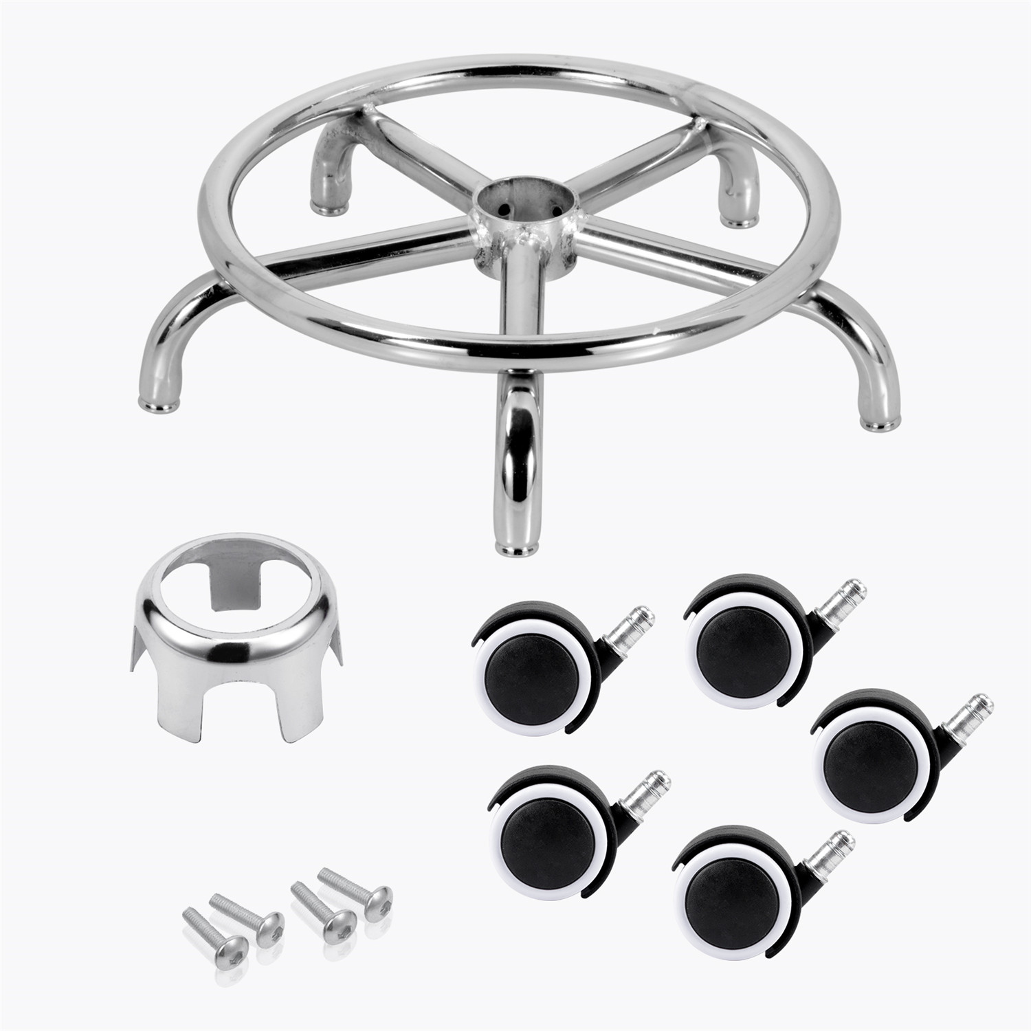 Five 360 degree wheels provide maximum maneuverability, anti-rust iron base with foot rest provides extra comfort.