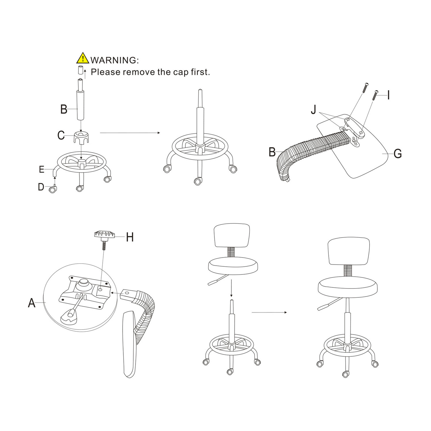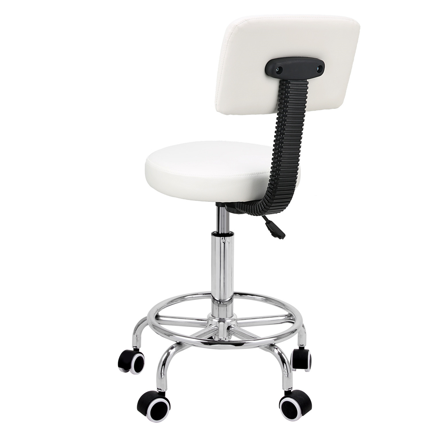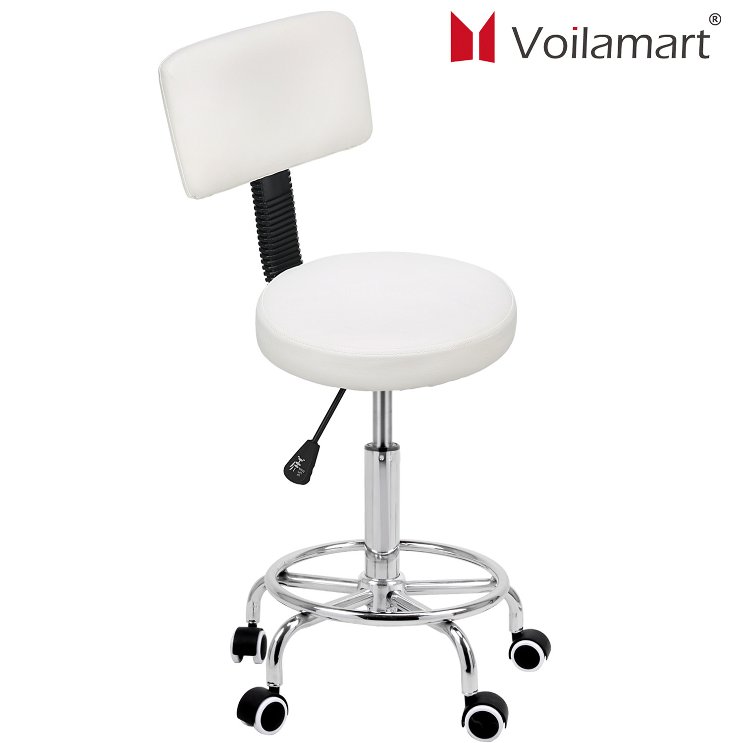 Five 360 degree wheels provide maximum maneuverability, anti-rust iron base with foot rest provides extra comfort.