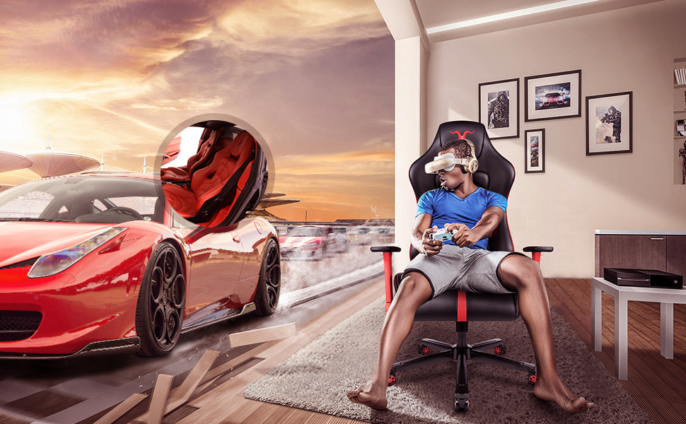 Furgle, Racing Style, High-Back Gaming Chair, Video Game Chair, Ergonomic Chair