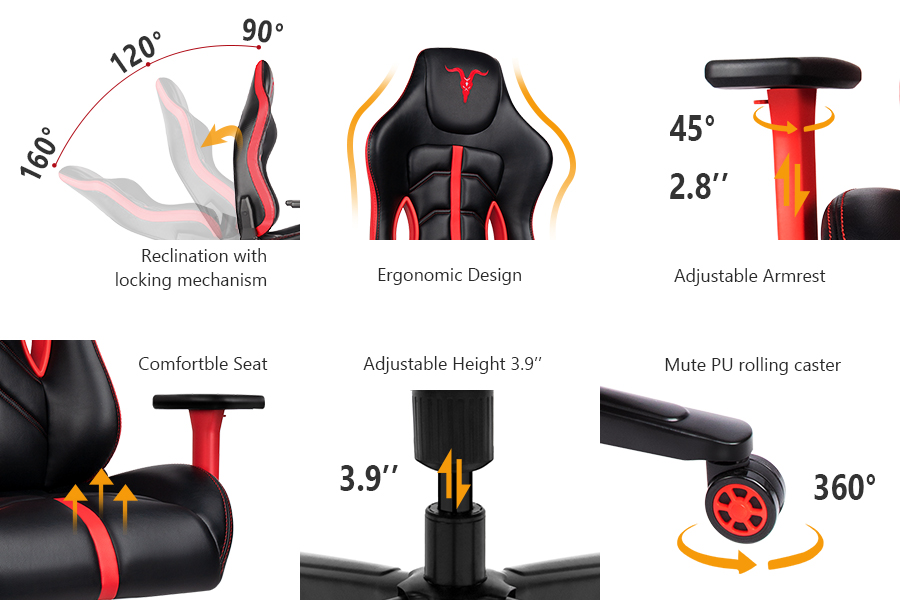 • Racing Style Design: ACE series gaming chair has the same appearance and wrapping sense of a racing chair, it is based on the human head and neck, waist physiological structure bionic modeling, in line with the curve of the human spine, fit the body curve, effectively relieving the pressure on the back, is the first choice to play the game
