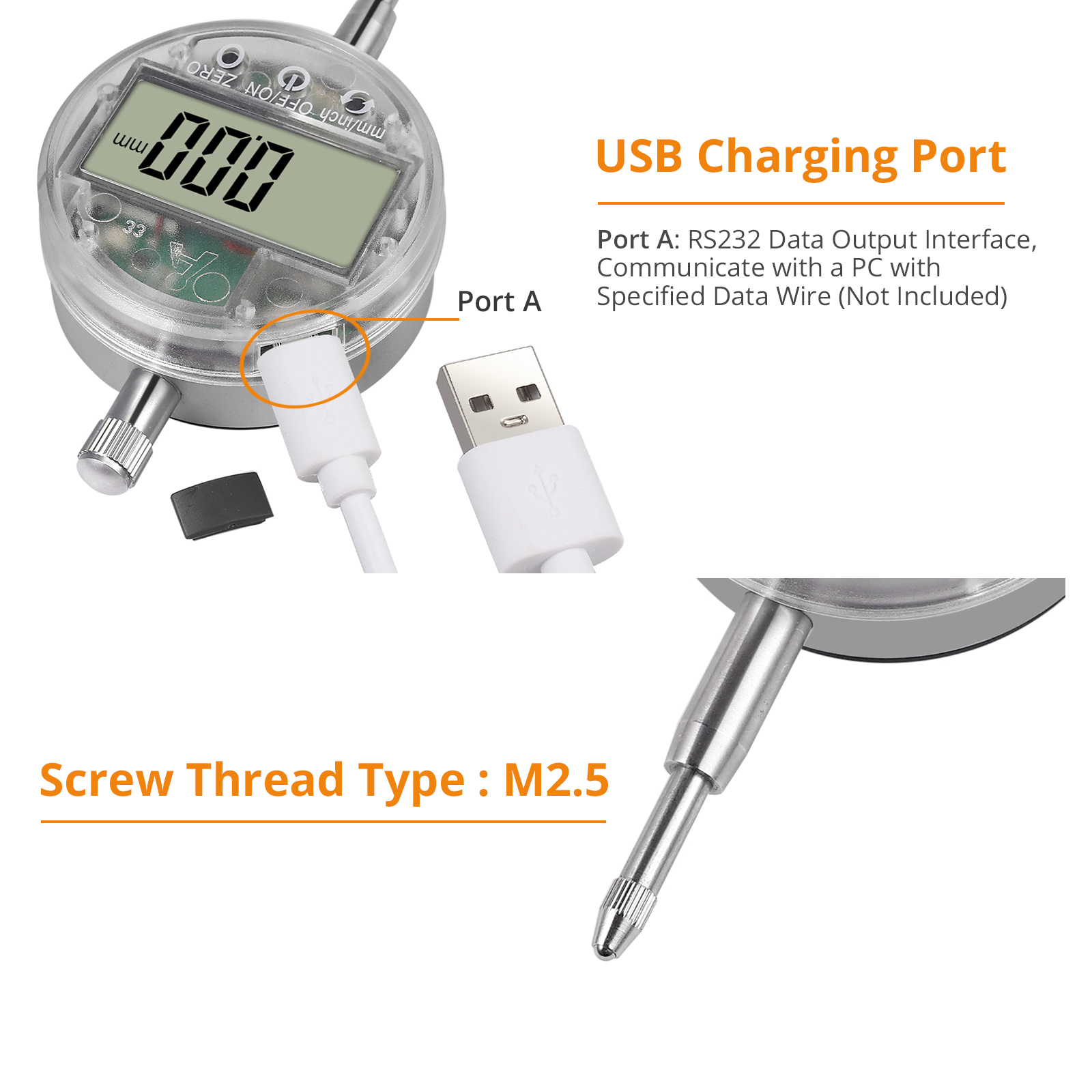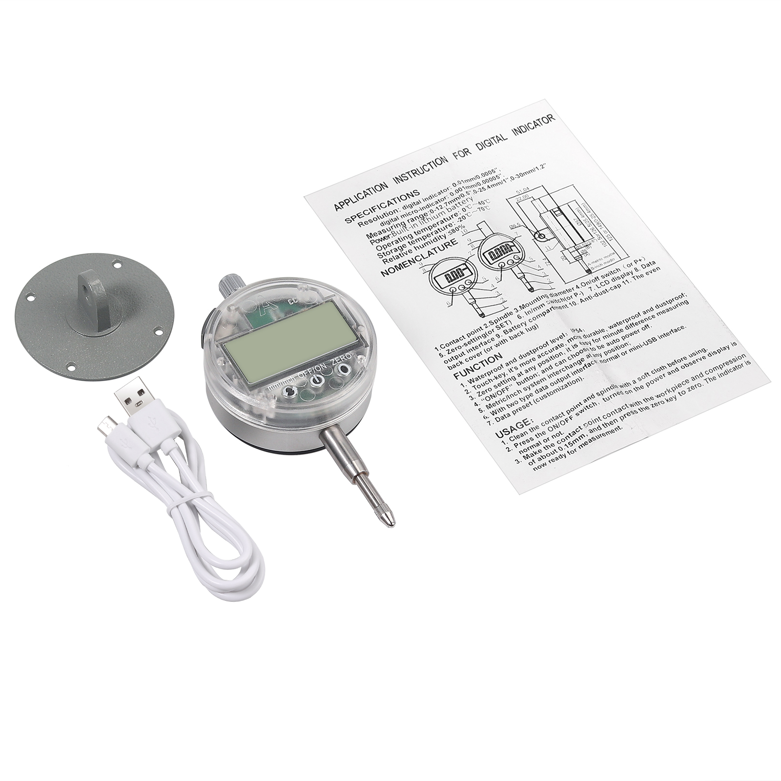 Messbereich von 0 ~ 12,7 mm (0 ~ 0,5 Zoll), hohe Auflösung bis zu 0,01 mm (0,0005 ")