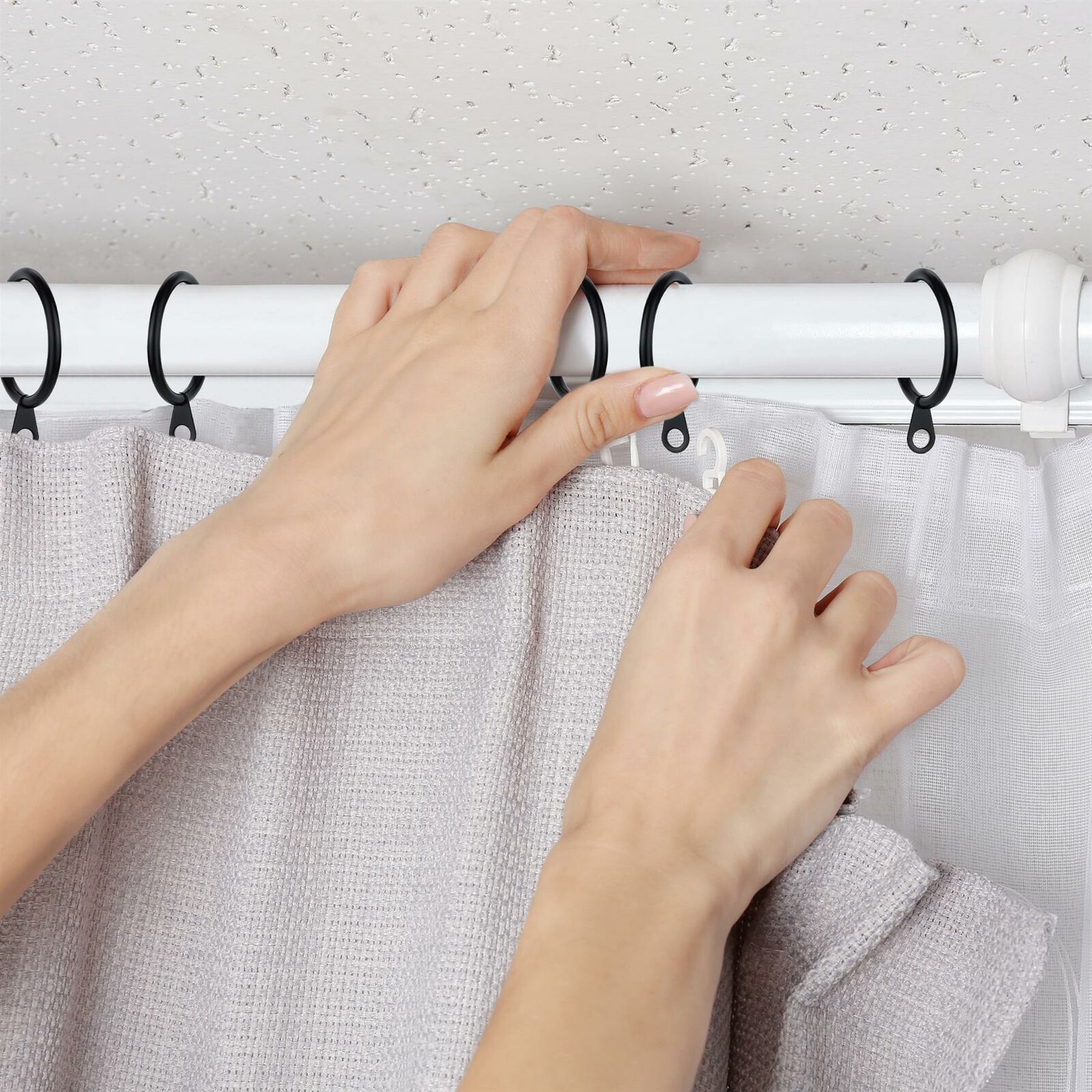 Smooth Gliding Curtains with these Rings, Curtain rings go through the curtain rod, and curtain hooks into the small ring, then you can try to sliding the curtain easily.