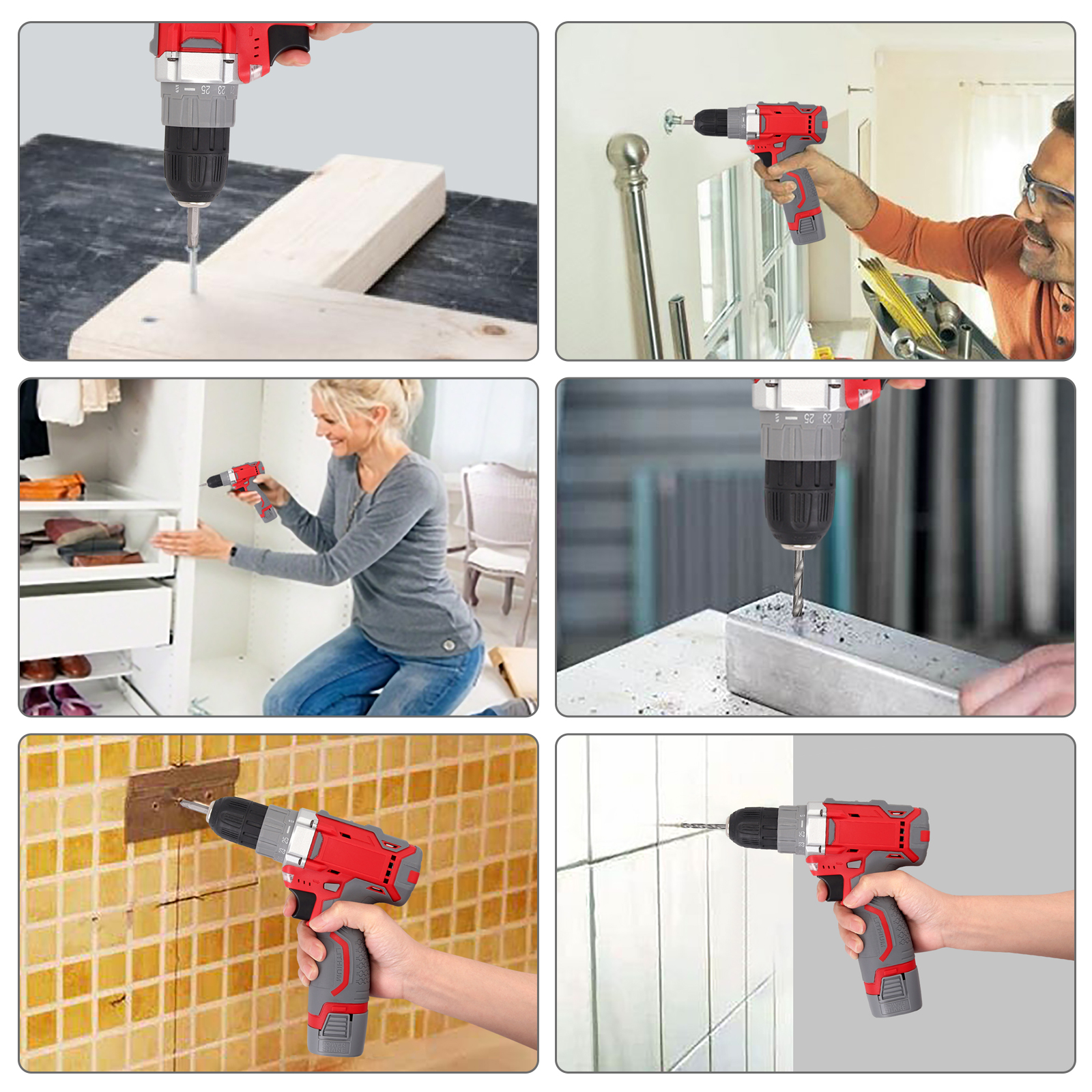 【Breite Verwendung】: Dieser Akku-Bohrschrauber bietet den perfekten Elektroschrauber, ideal für Heimwerker-Neulinge und erfahrene Handwerker mit der Fähigkeit, Löcher zu bohren.