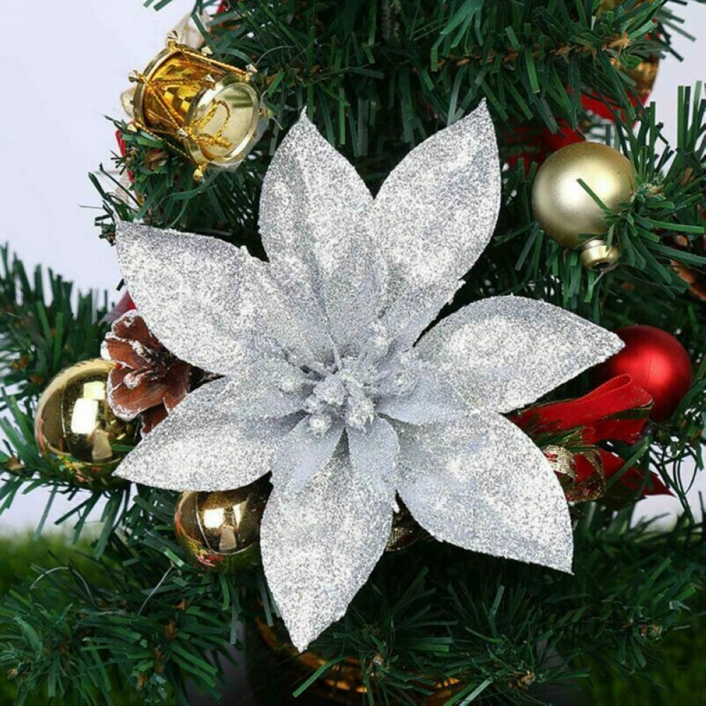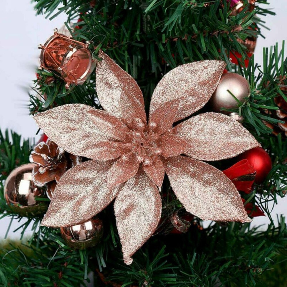 1. The Christmas flowers ornaments are made of flexible and non-breakable material, can be applied to anywhere you want, covered with glitter, which make the tree more attractive and add more holiday atmosphere.