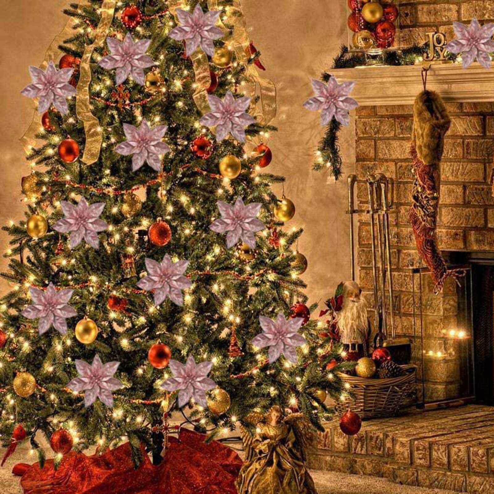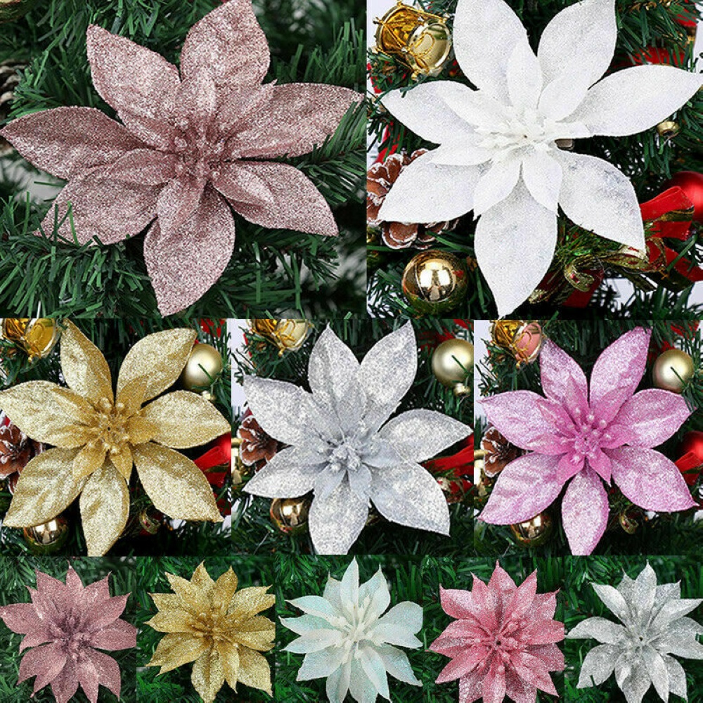Christmas 9 cm Large Poinsettia Glitter Flower Tree Hanging Party Decor UK