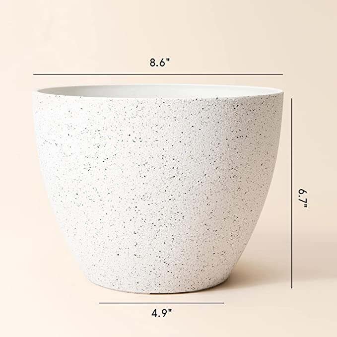 Unique Speckled White Design - This attractive speckled white planter (21.94 cm deep x 17.98 cm tall) is the ideal way to display your favorite plants and flowers. You will love them to decorate outdoor areas like patios, decks or gardens, or enjoy them in your kitchen, living room or bathroom.