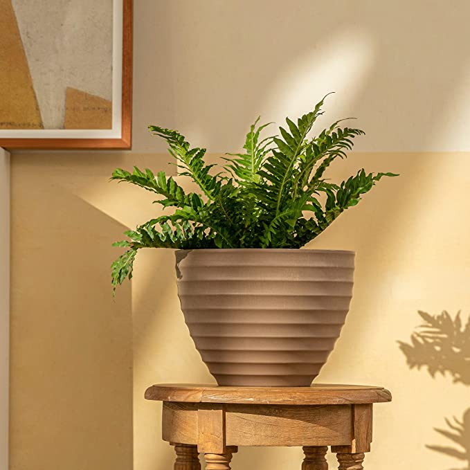 Horizontal Ridge Design - The minimalist style pairs beautifully with the ridged taupe finish in modern home and garden decor with your favorite greenery as the centerpiece of the space.