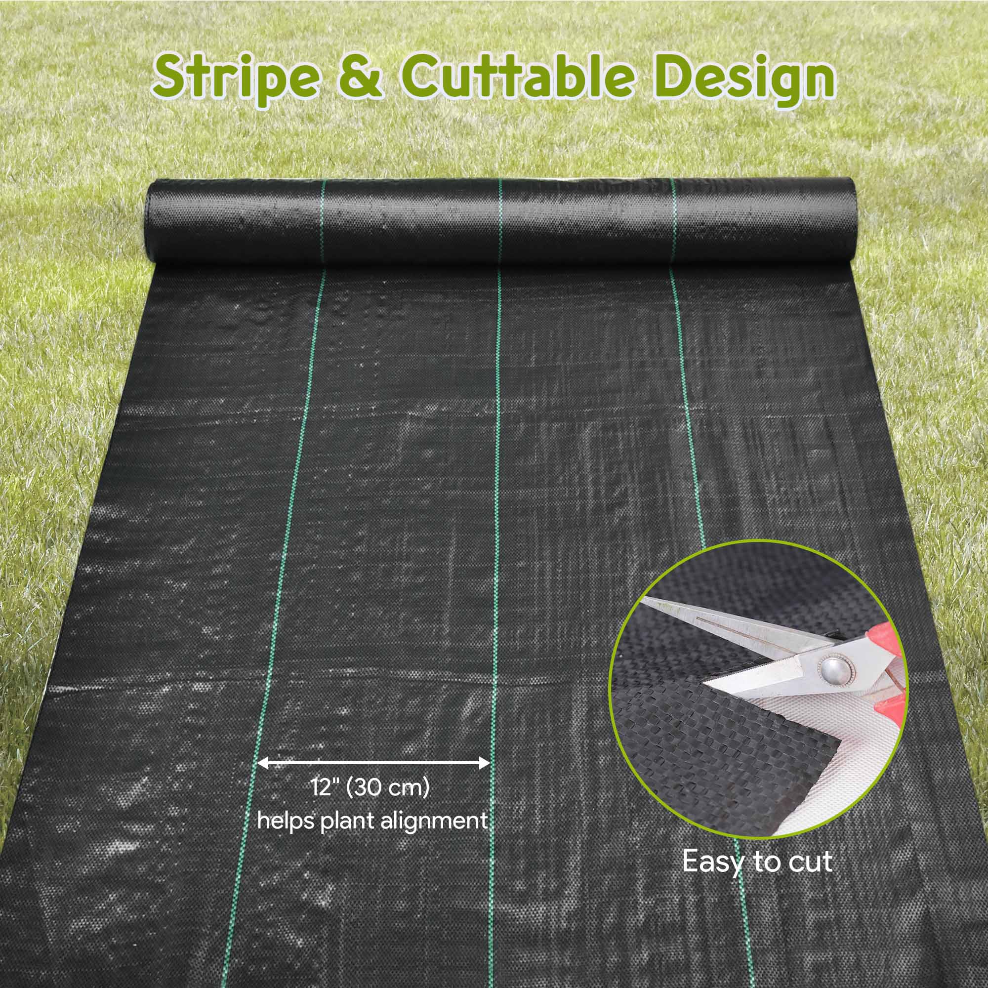 - Stripe & Cuttable Design - Green stripe sewn in landscape fabric every 30 cm (12") helps plant alignment; Easy to cut into different sizes for customized demands