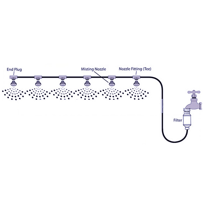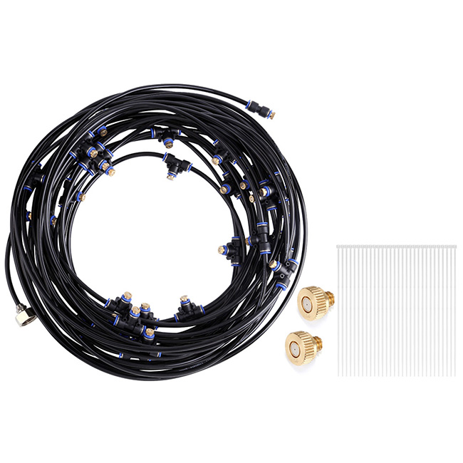 1.管总长23米,管道内径4mm,外径6mm;2.产品明细:23米管 misting line,6分内螺纹水龙头快接(内含胶圈)*1 standard G3/4=DN20=25mm,黄铜喷头*36(其中2个为备用喷头)brass mist nozzles,接头*34 splitter,扎带*30 cable ties;3.使用说明:①将快接接到水龙头上,②打开水龙头通水,清洗管道,③用扎带把管道固定在合适的位置,④打开水龙头,直到喷雾器工作,享受喷雾系统带来的雾化效果,⑤如长时间不用,要尽量保持管道干燥清洁;4.夏日可有效降温,甚至还能避免蚊虫滋扰;5.接头和管道都已接好,可轻松安装使用;6.可用于室外帐篷、温室花园、露台等。