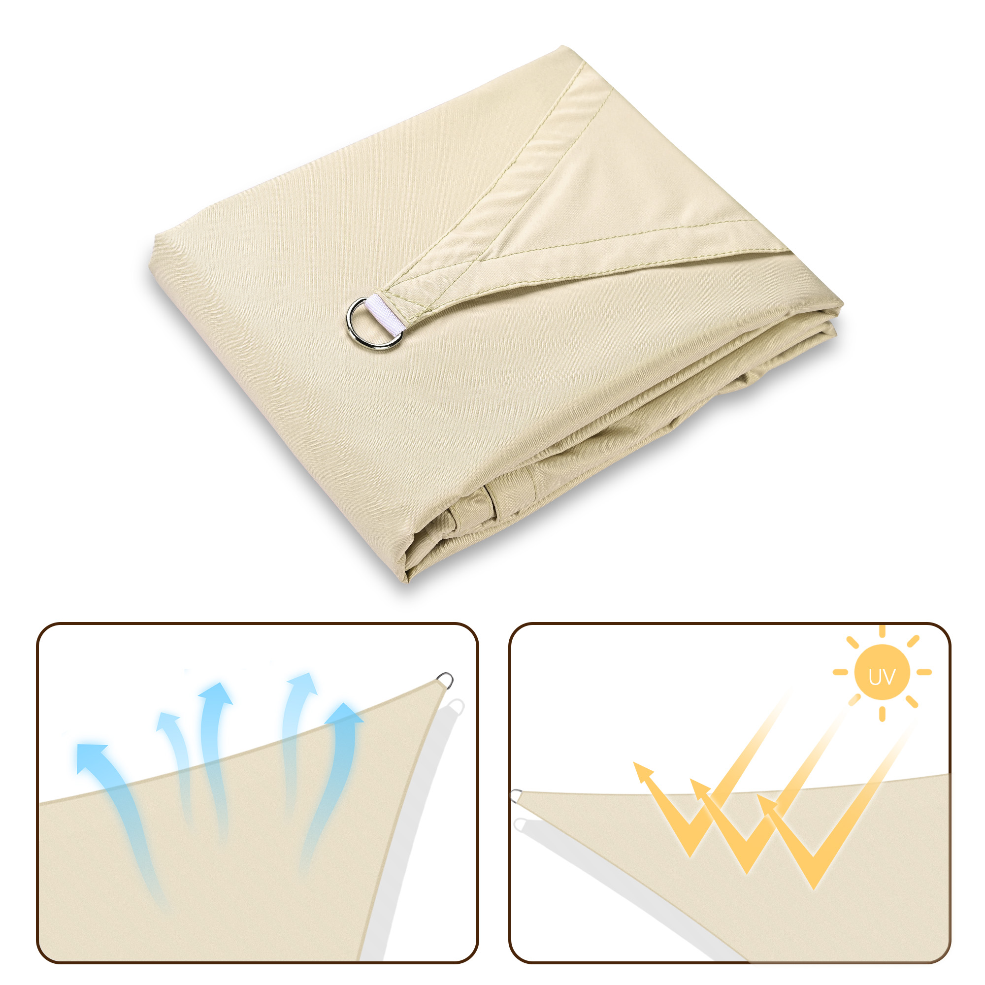 - Polyester Reduces Heat Transfer - Made of 100% brand new polyester fabric to efficiently reduce the temperature under sail about 50°F (10°C), PU coating on surface for resisting water to keep long lifespan