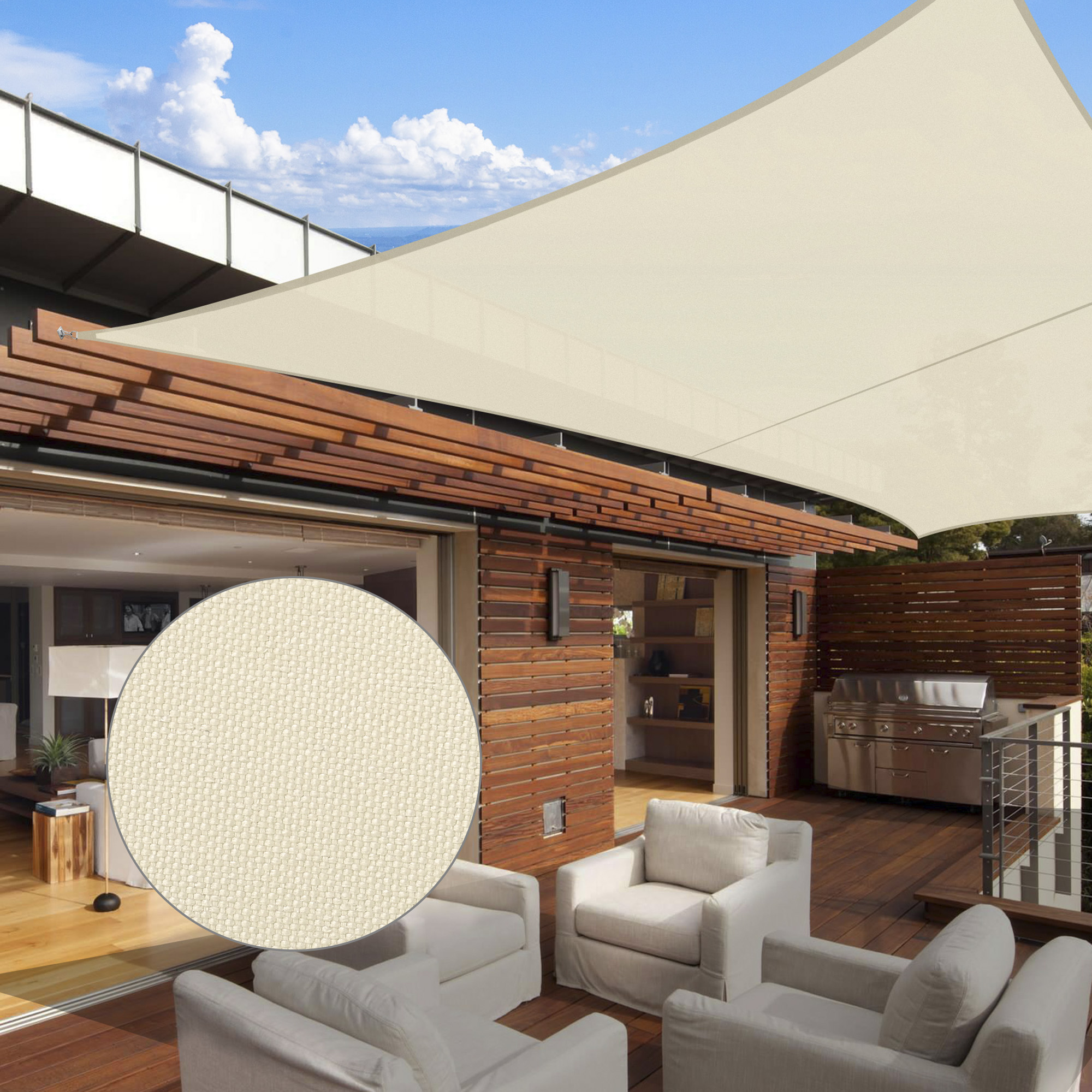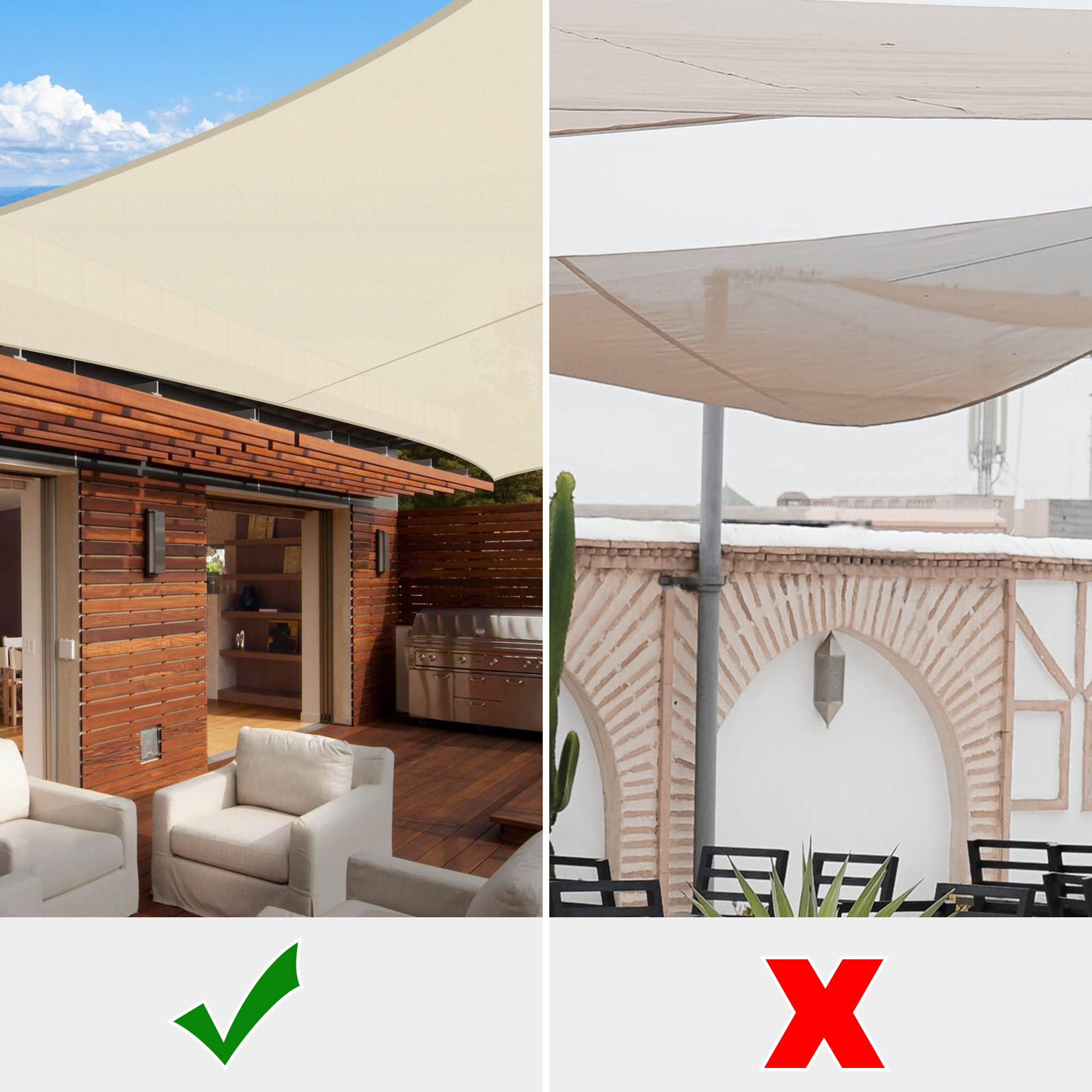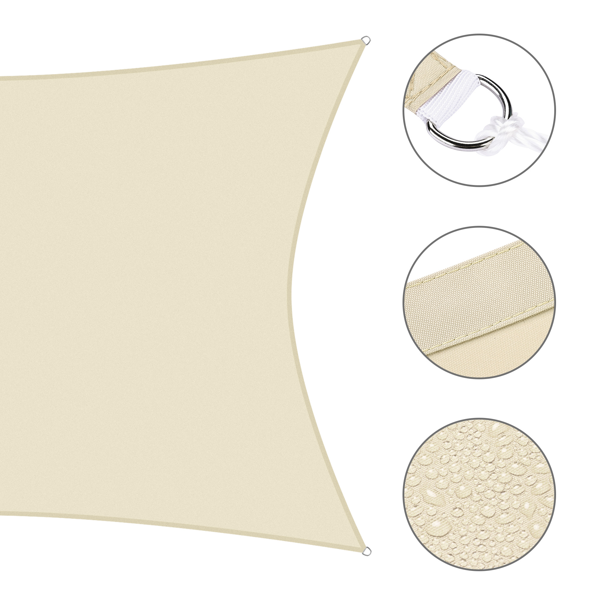 - Durable in Use - Double stitched seam reinforces the edge to prevent fraying and ripping; Curved rectangle shape helps the sail to keep tight; Heavy-duty ropes included; Color fastness of European Level 4 to ensure original color to last for a long time; 2-year warranty for quality issue