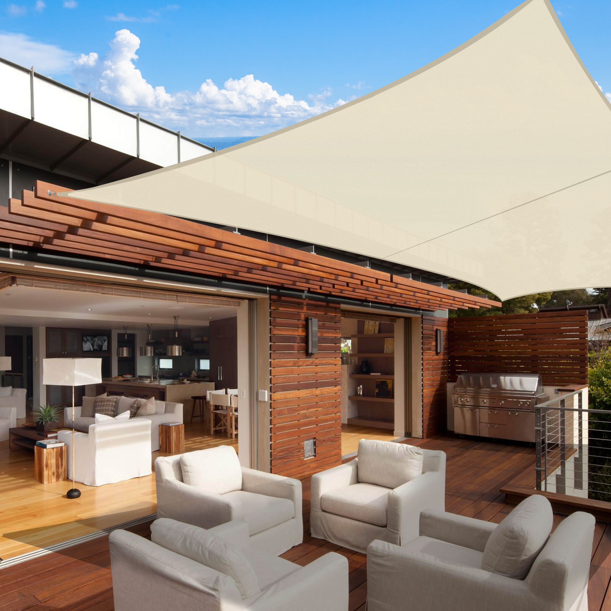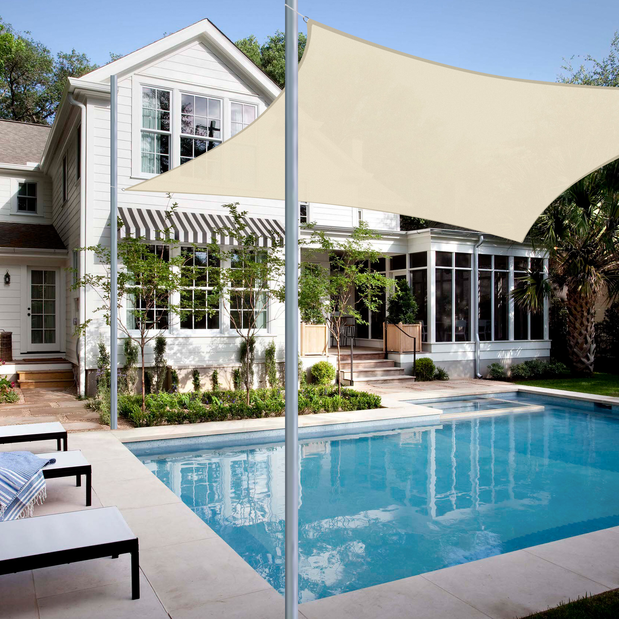 - Decorative & Effective Shading - 3x4 m Rectangle Sun Shade Sail, gorgeous color to attract attention, a beautiful decoration for backyard, balcony, terrace, porch, pergola, poolside, deck and so on; Also, a perfect awning sunscreen shade to cool down patio for outdoor party with friends or families