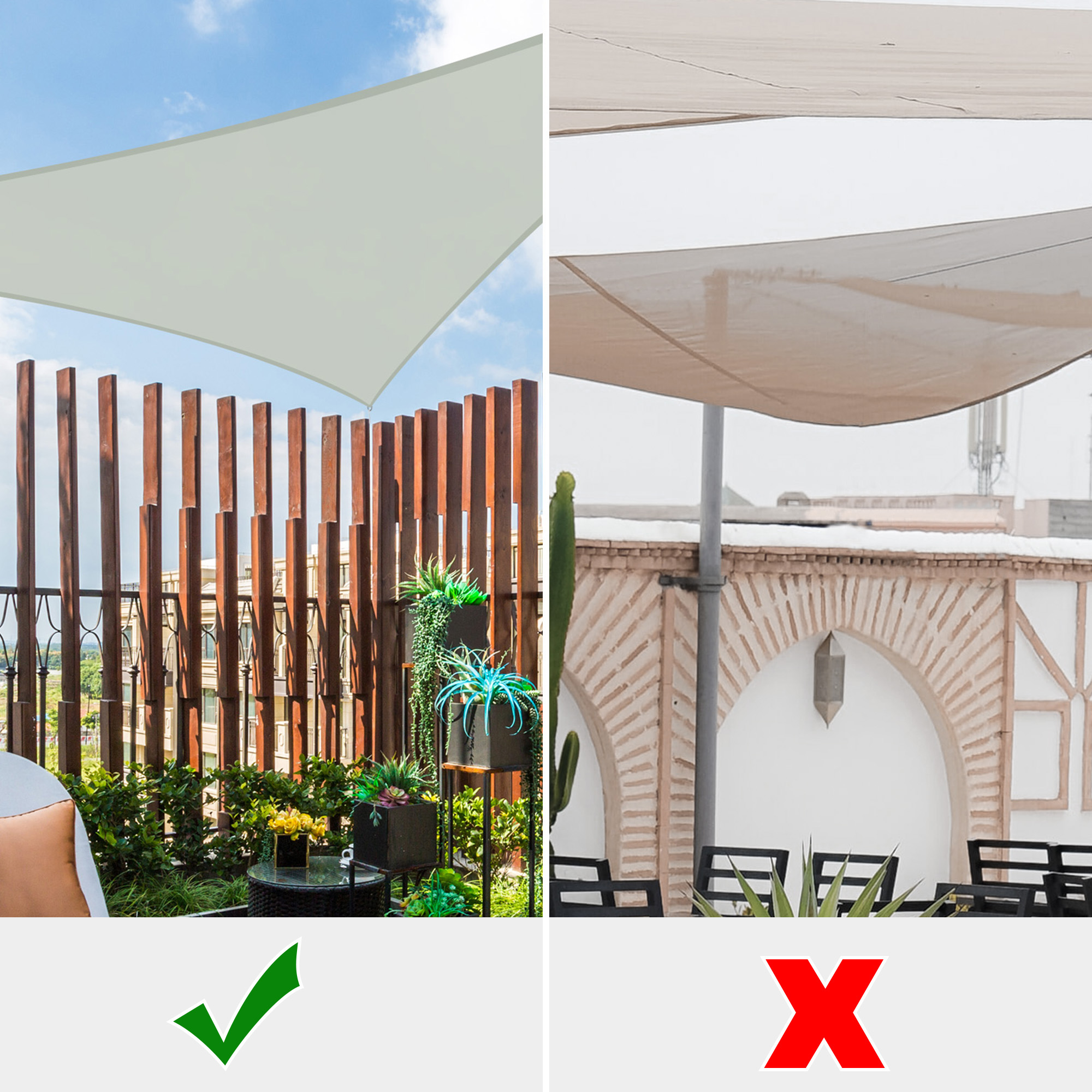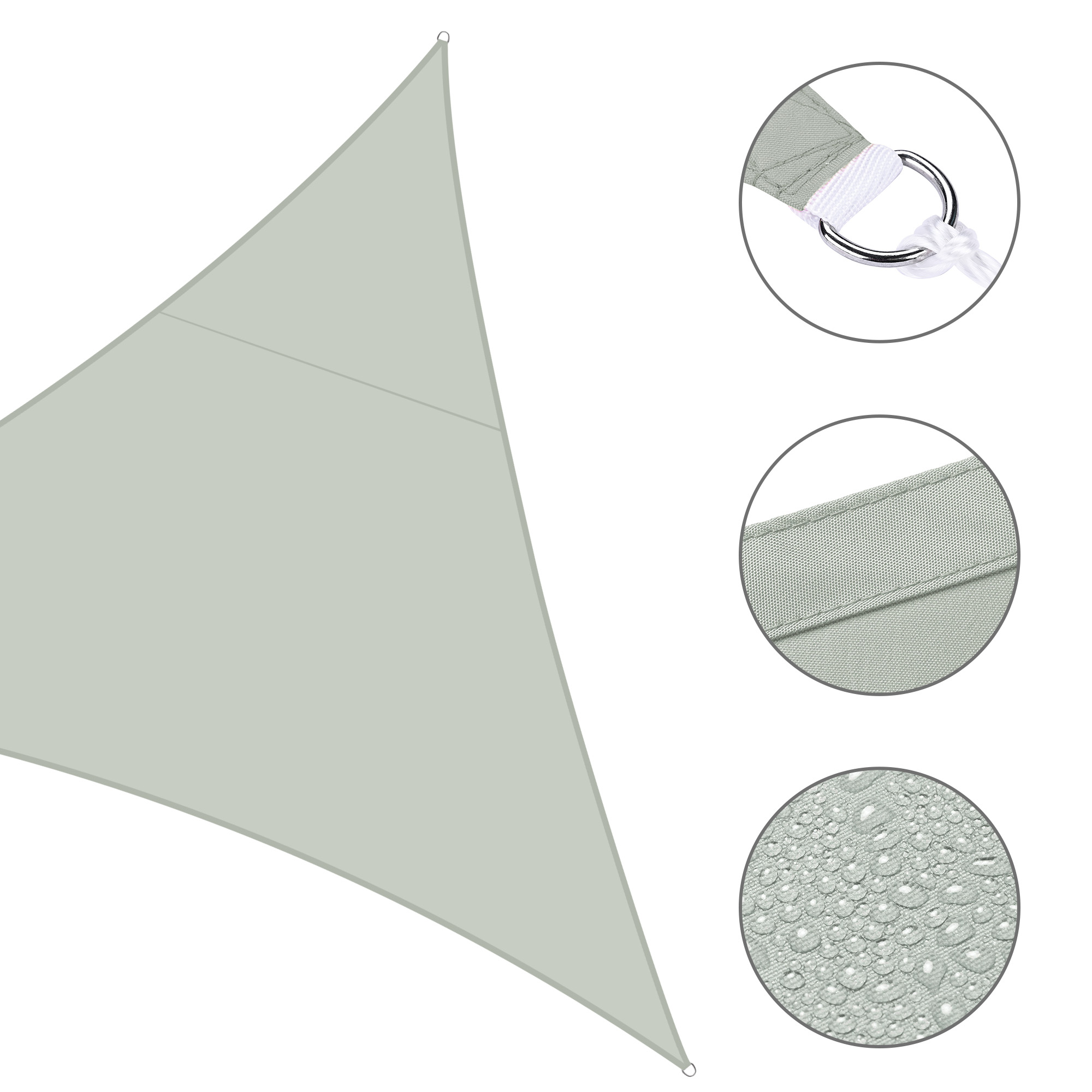 - Durable in Use - Double stitched seam reinforces the edge to prevent fraying and ripping; Curved triangle shape helps the sail to keep tight; Heavy-duty ropes included; Color fastness of European Level 4 to ensure original color to last for a long time; 2-year warranty for quality issue