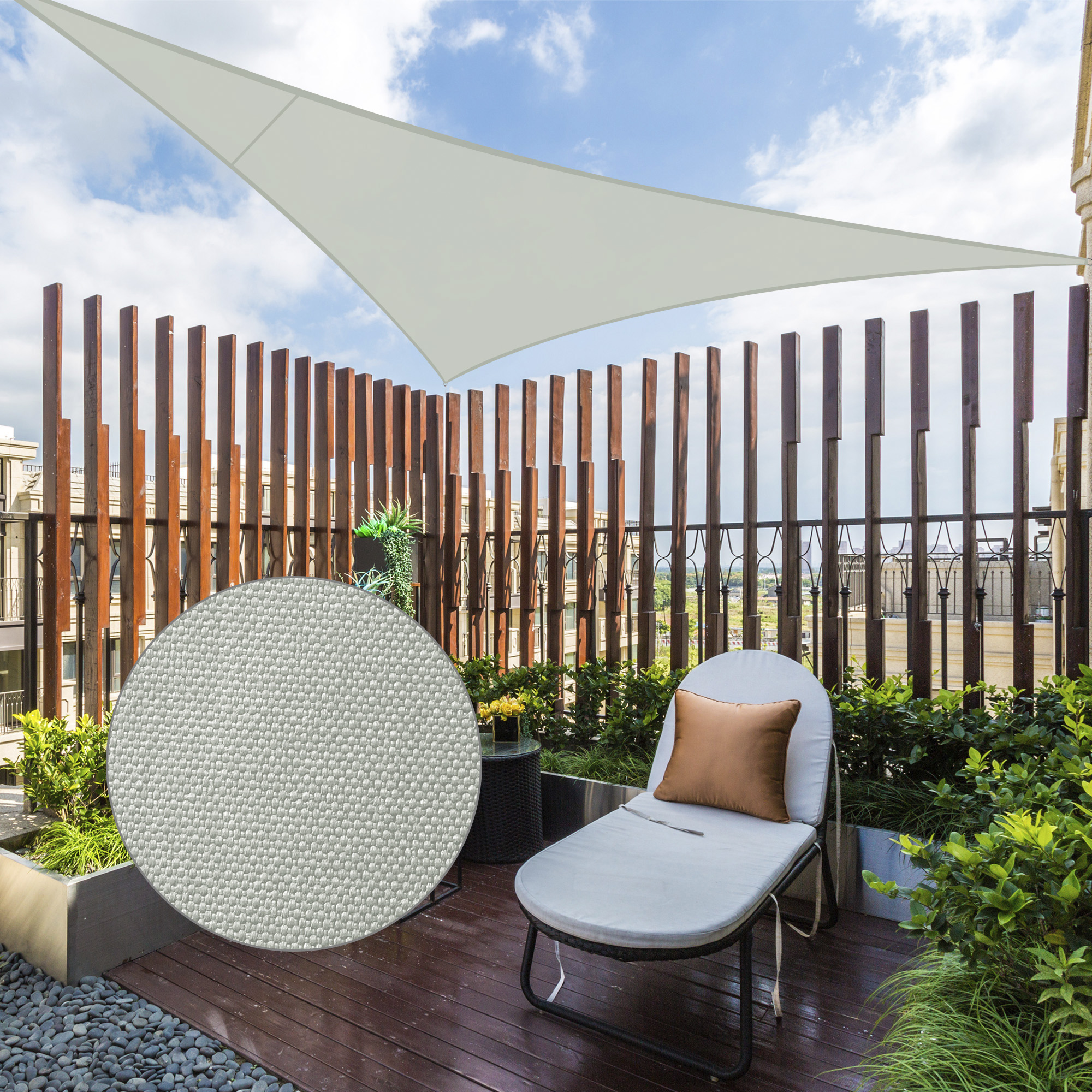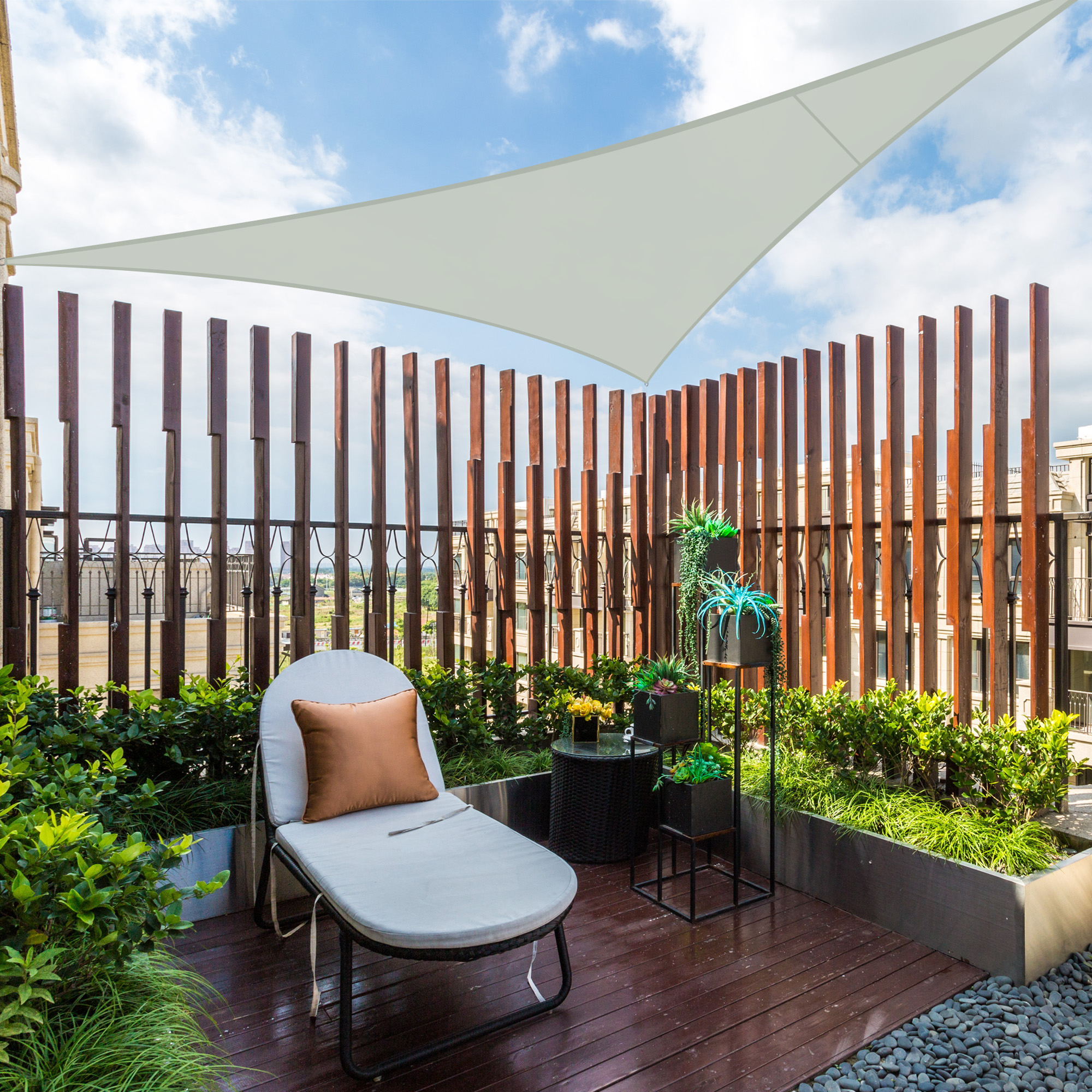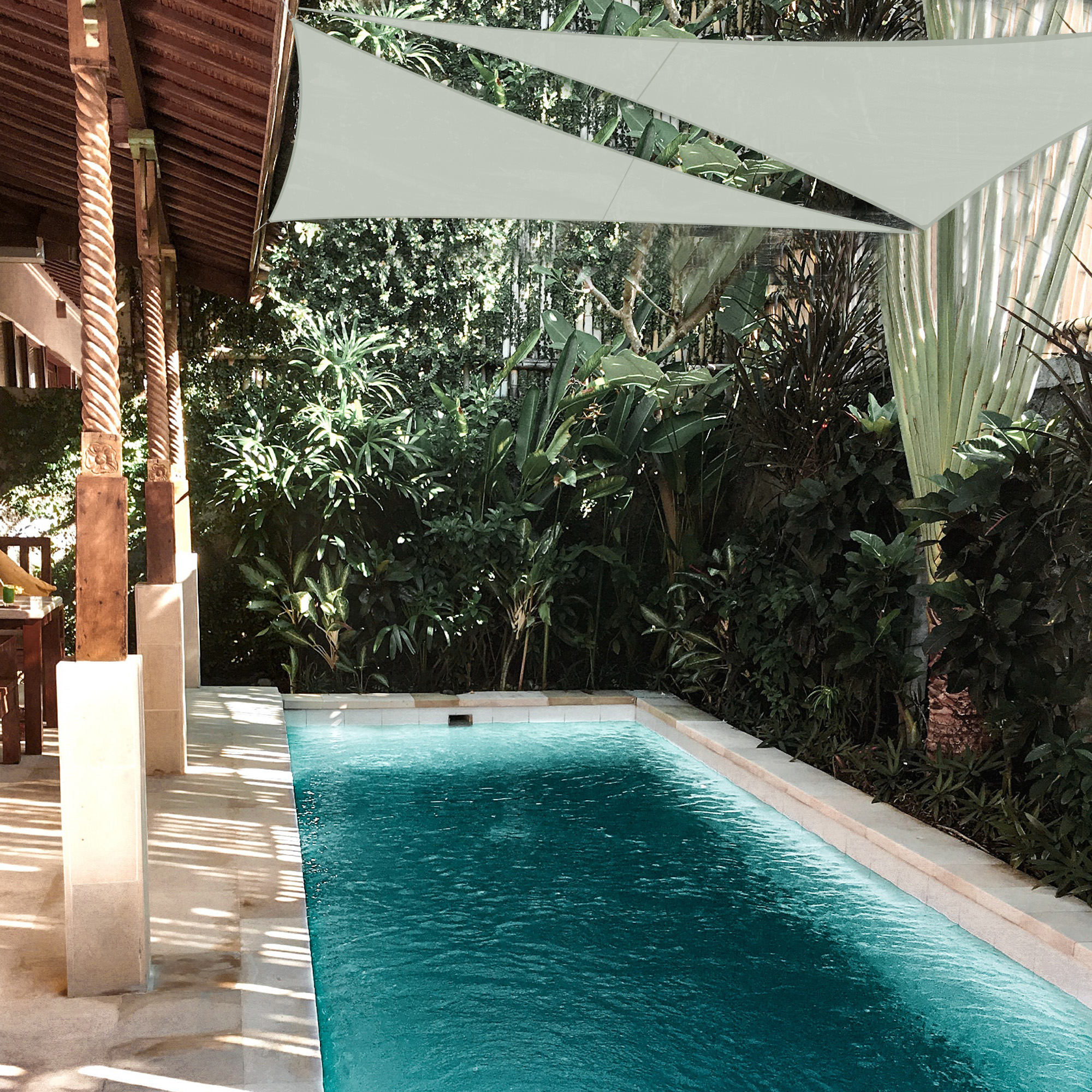 - Decorative & Effective Shading - 3m Equilateral Triangle Sun Shade Sail, gorgeous color to attract attention, a beautiful decoration for backyard, balcony, terrace, patio, porch, pergola, deck and so on; Also, a perfect sun shade to offer a shelter near the pool for swimmers to rest