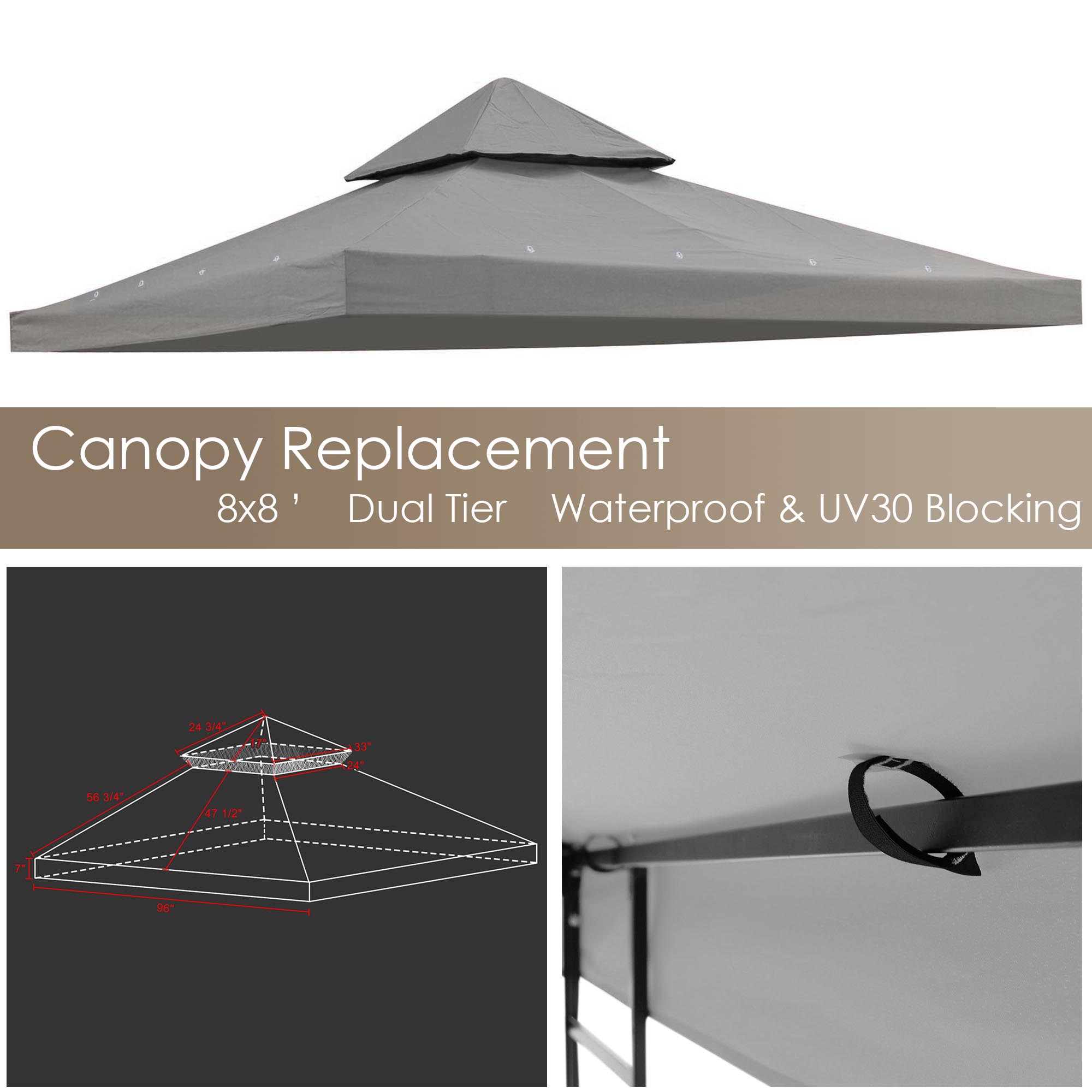 8x8ft 2T Waterproof Gazebo Top Gray