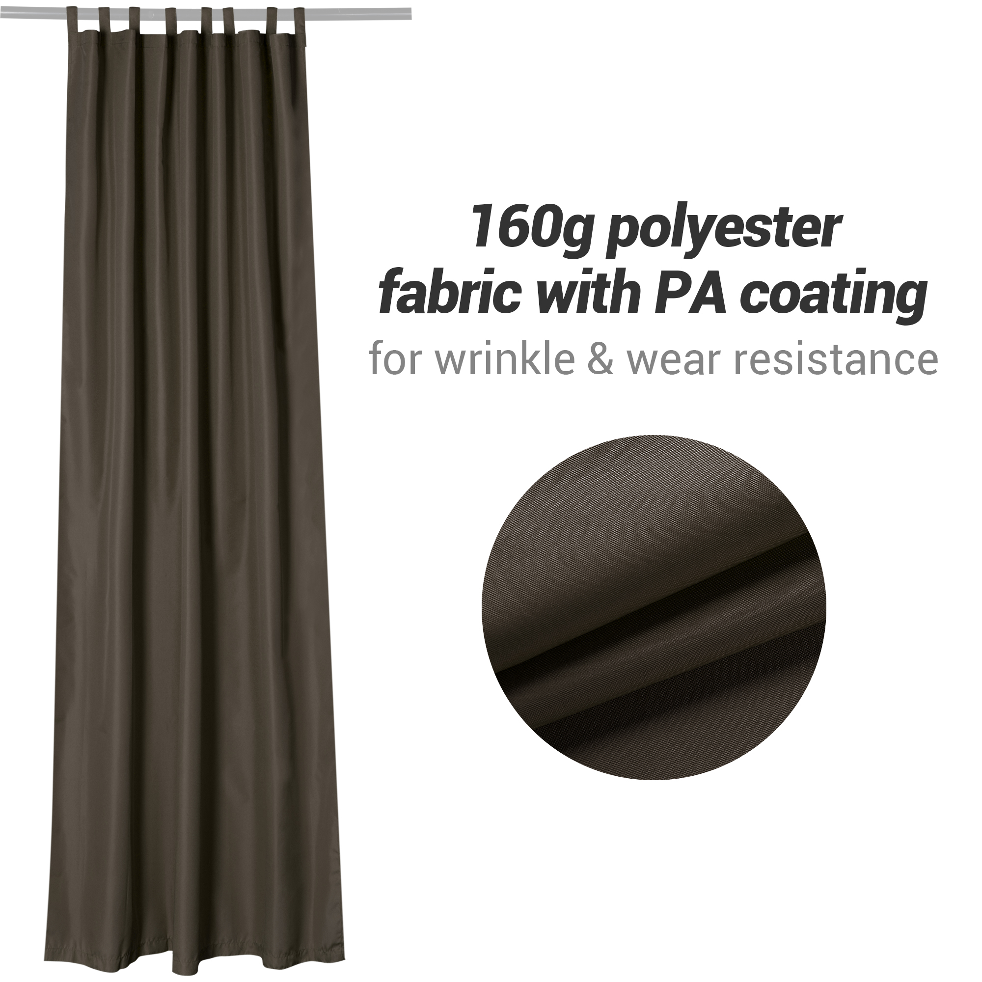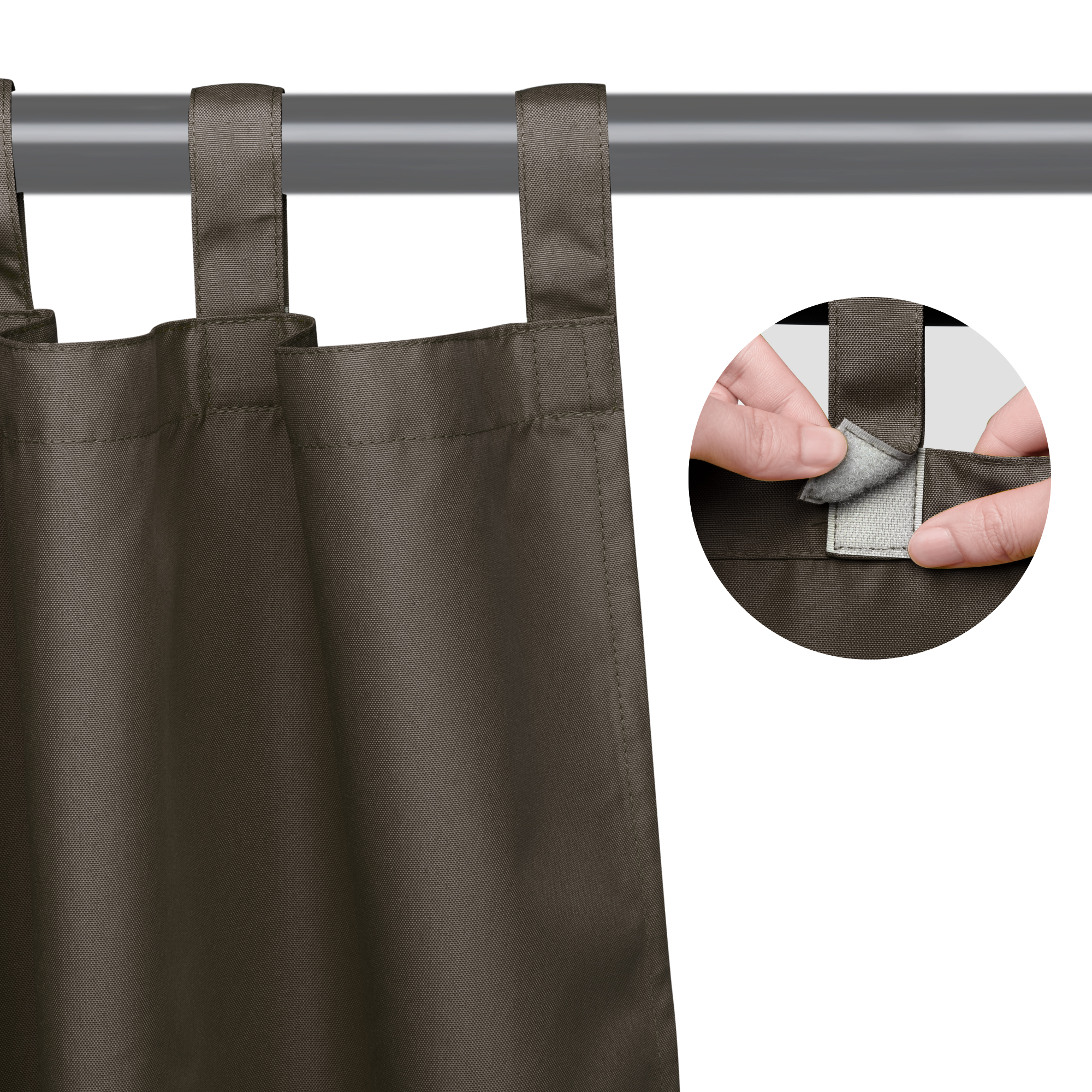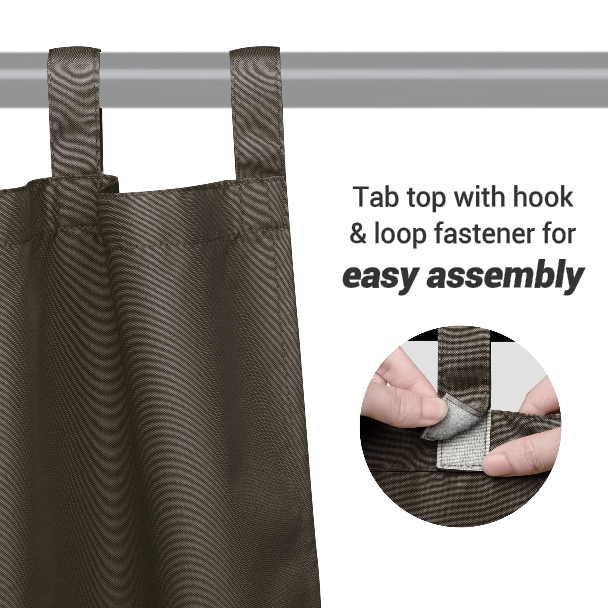- Hook & Loop Fastener for Easy Installing - 1 Piece 54"x96" Outdoor Curtain Panel, tab top with hook & loop fastener, much easier for attaching to the rod, 4" long tab top perfectly fits curtain rod with diameter up to 2"