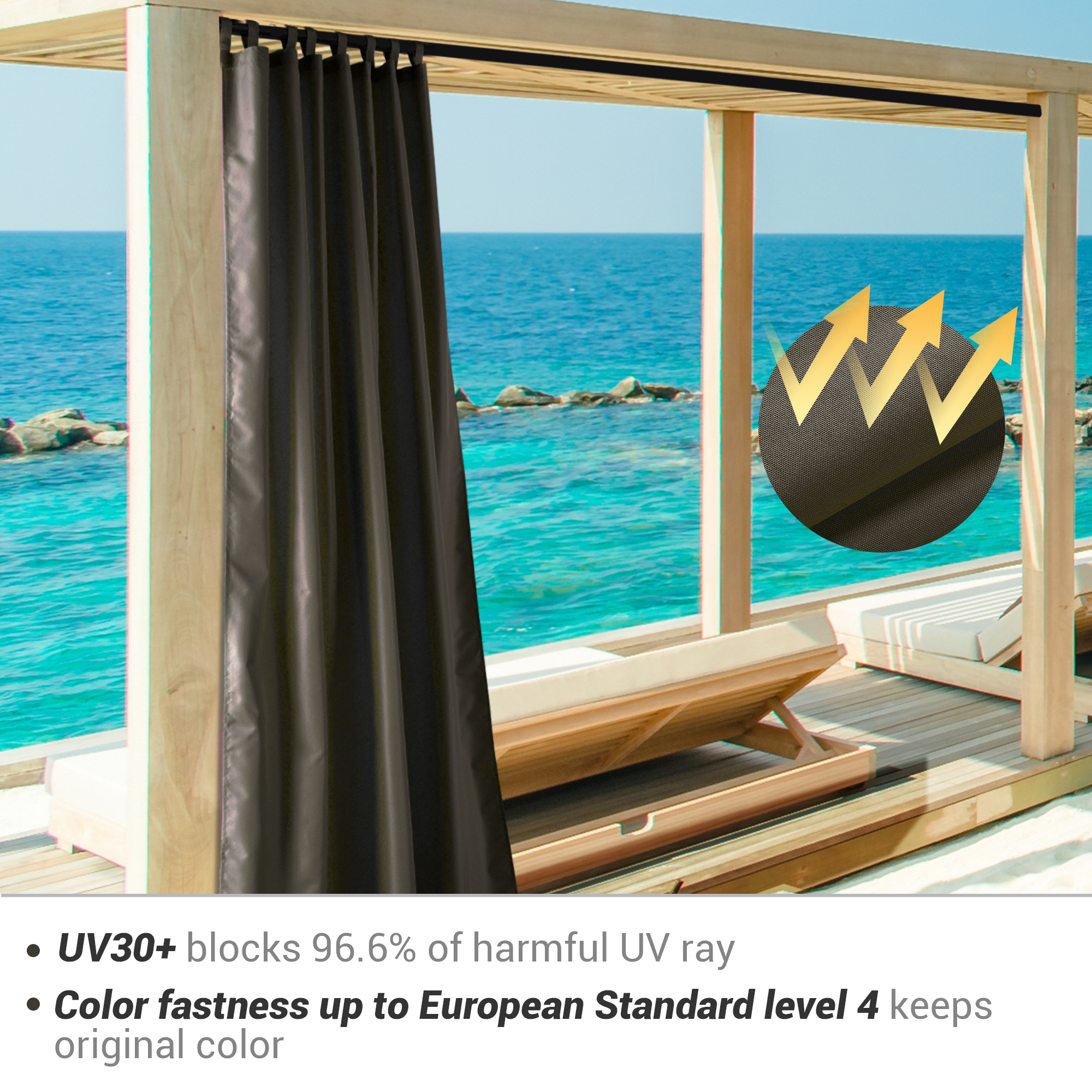 - UV 30+ Protection & Fade Resistance - Effectively blocks 96.6% of harmful UV ray, enjoy the outdoor view and fresh air without worrying burning sunlight; Color fastness up to European Standard level 4 keeps original color for a long-lasting beauty