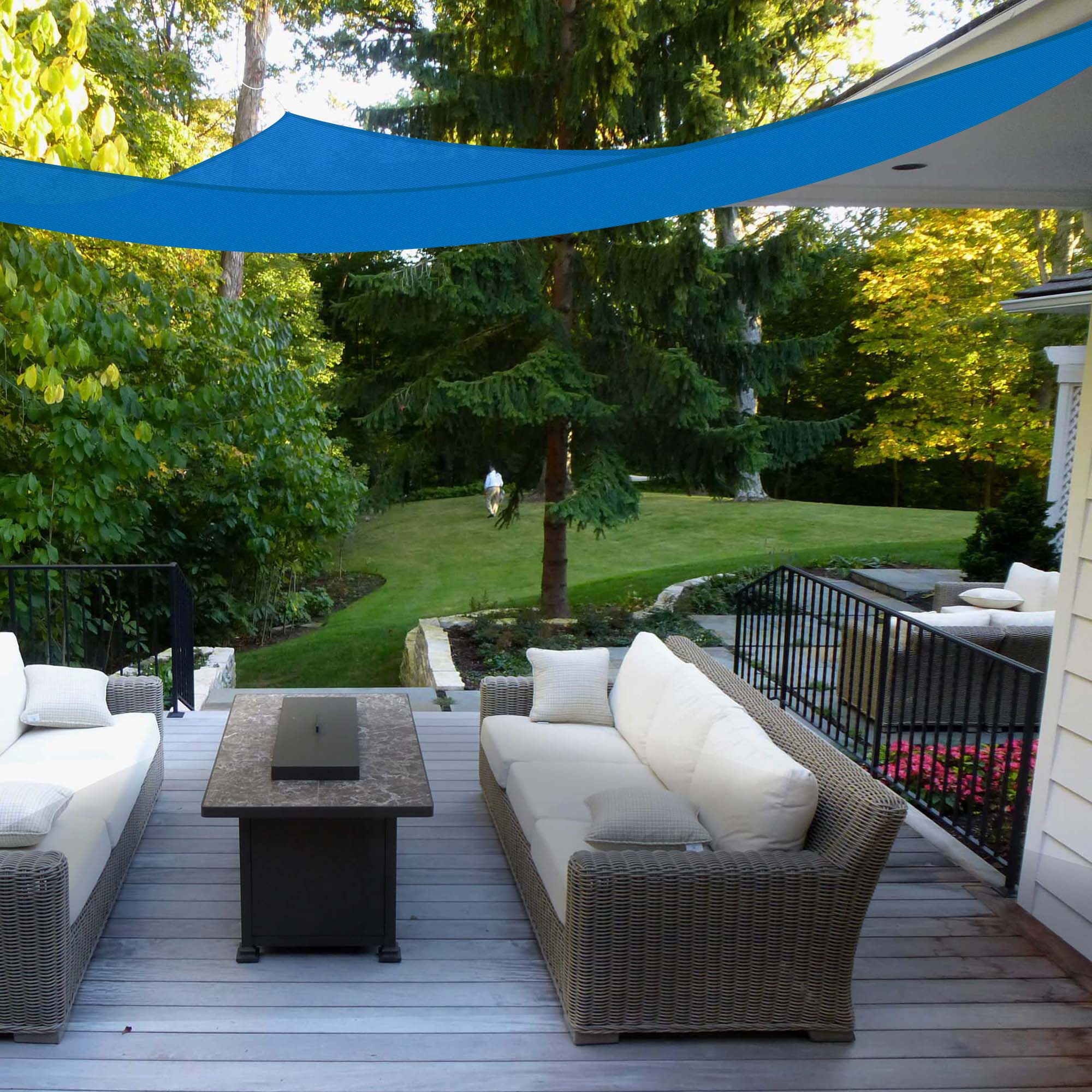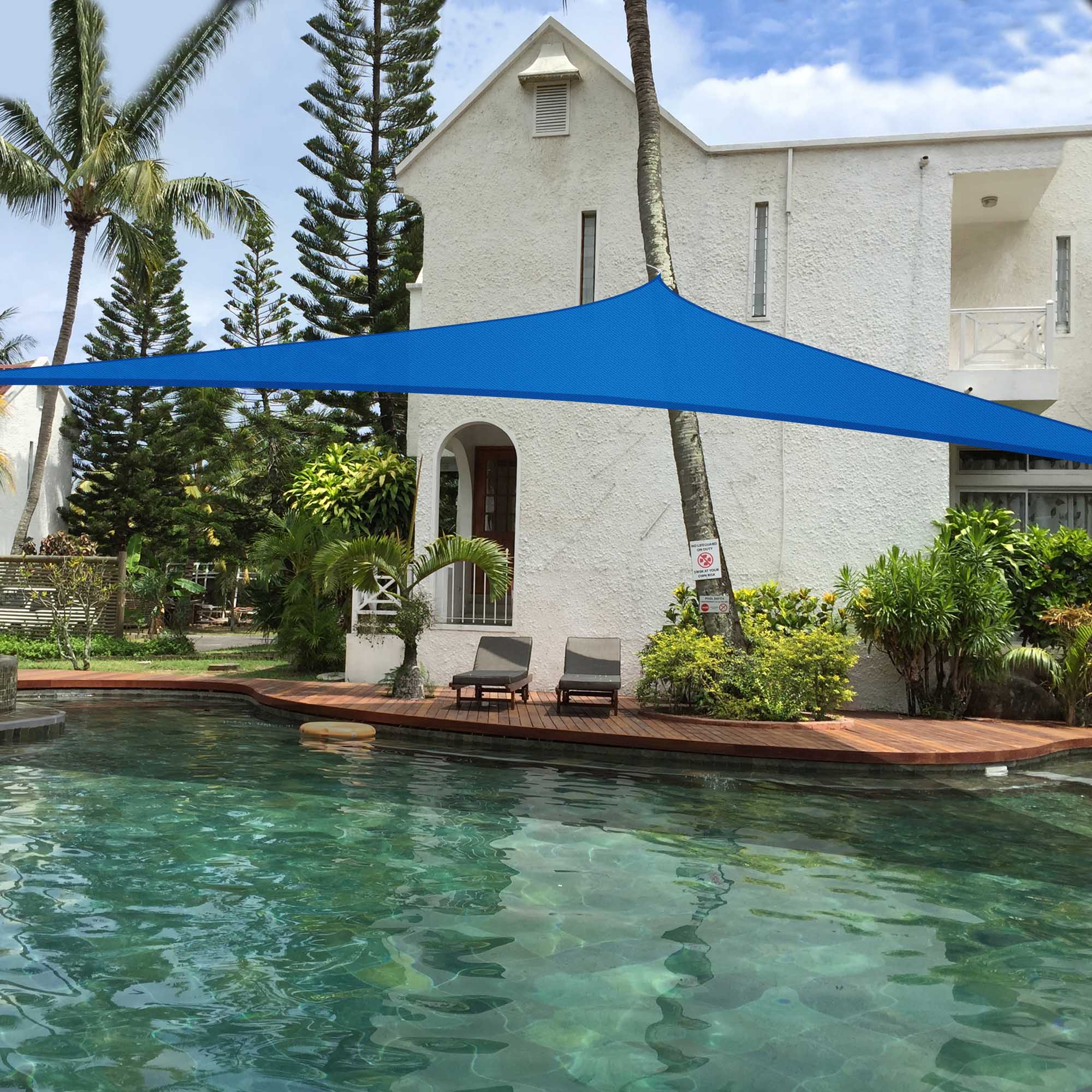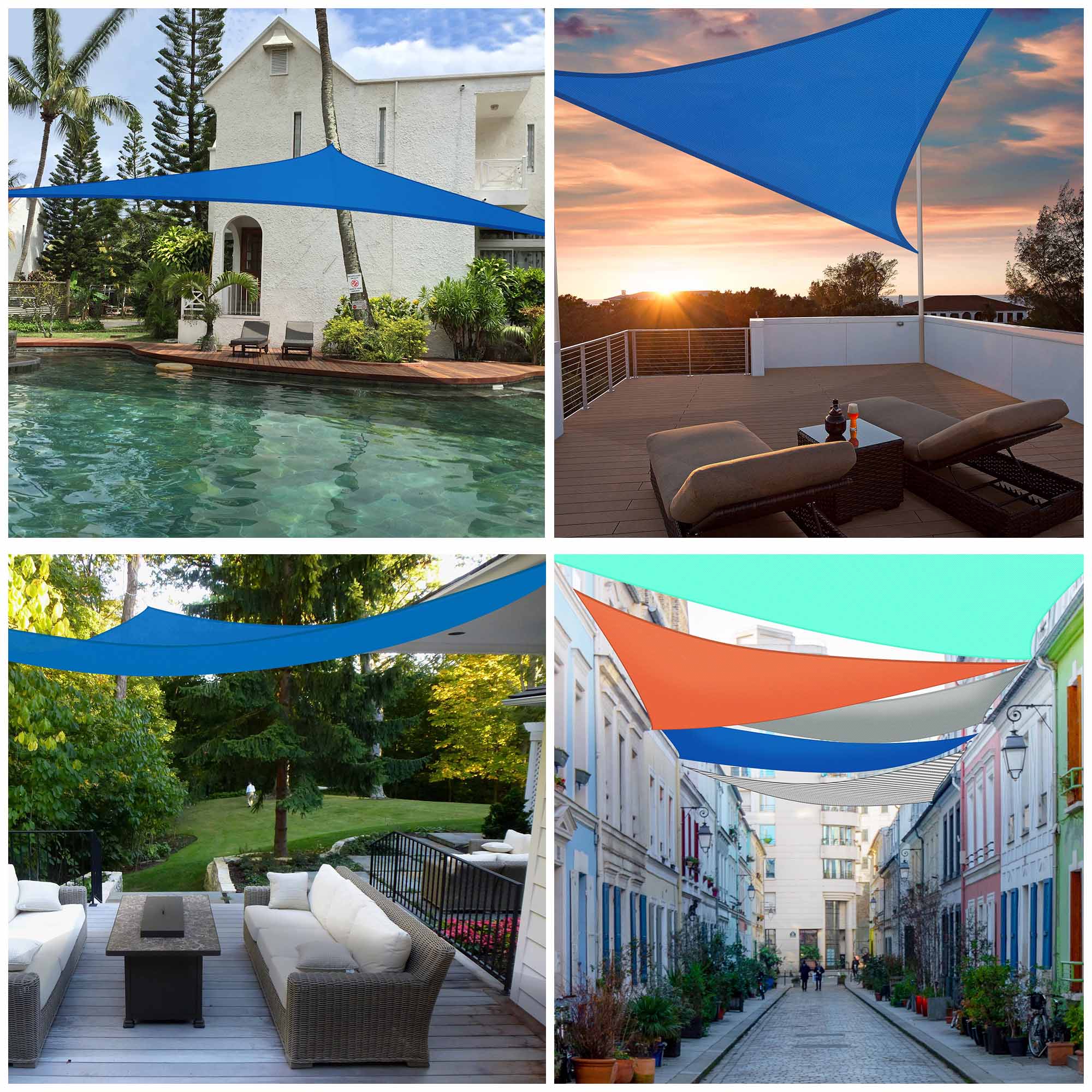 - Decorative & Effective Shading - 11 ft Equilateral Triangle Sun Shade Sail is a perfect sun shade to offer a shelter near the pool for swimmers to rest, ideal for backyard, balcony, terrace, patio, porch, pergola, deck and so on; it's also a beautiful decoration to build a holiday style courtyard