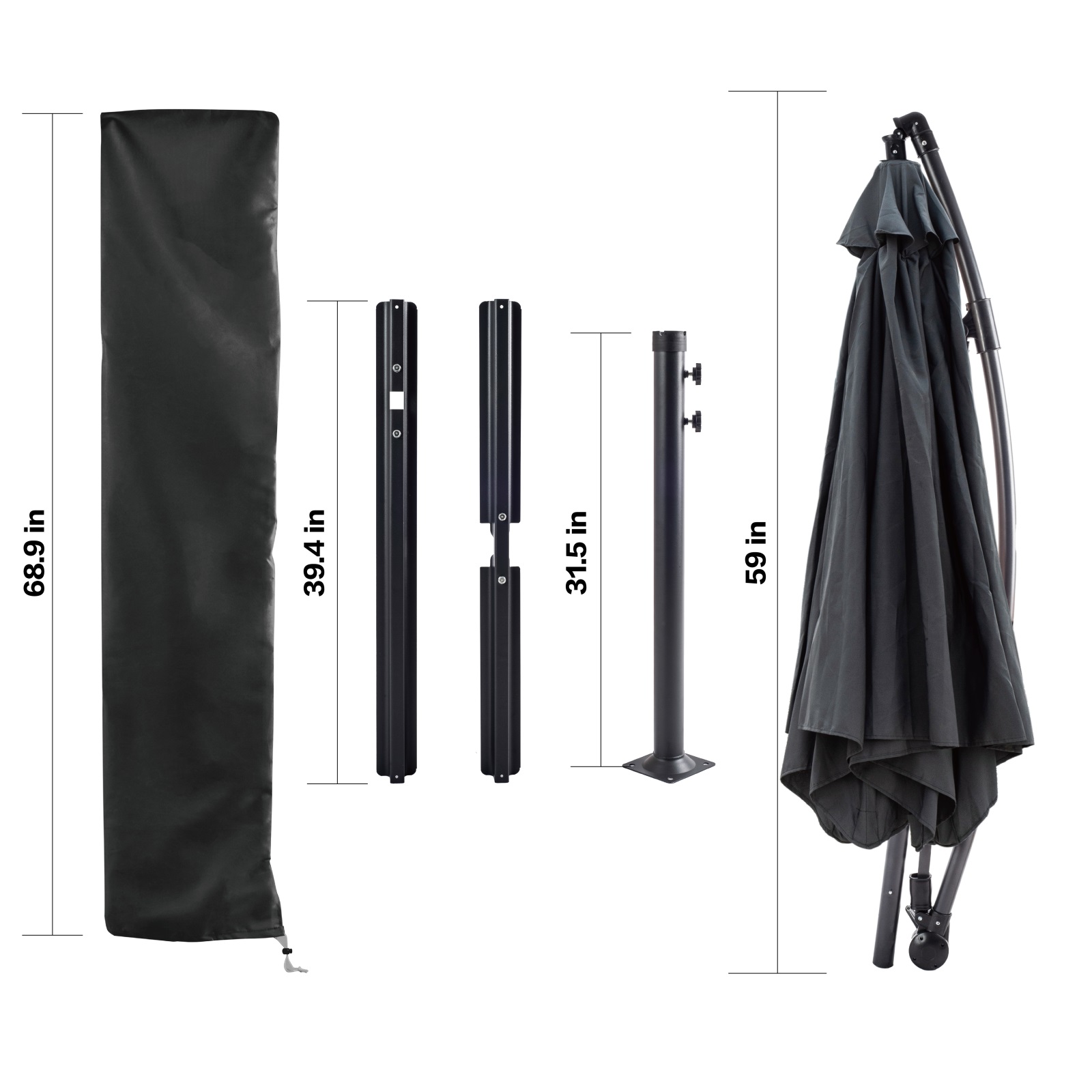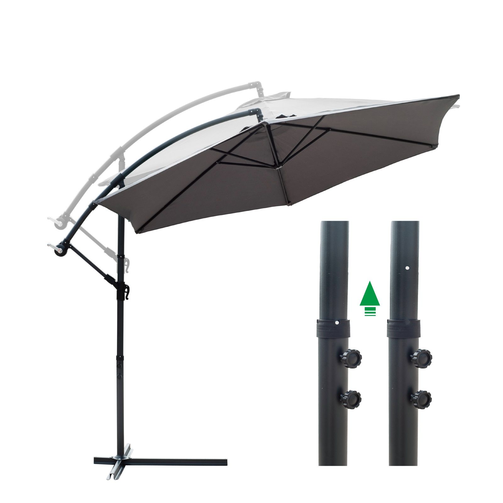 The suspended garden parasol with a diameter of 10ft has a 6-rib support structure composed of an adjustable metal structure that can be adjusted according to the sun's inclination. In addition, the decentralized umbrella is easy to carry, so you can move the umbrella in the garden according to the position of the sun. Better wind resistance and shading ability. The pole of the parasol is made of iron and covered with anthracite epoxy paint, which can be used for a long time and has better durability; UV50 + parasol can provide better sun protection effect. Easy to assemble and disassemble, saving space.