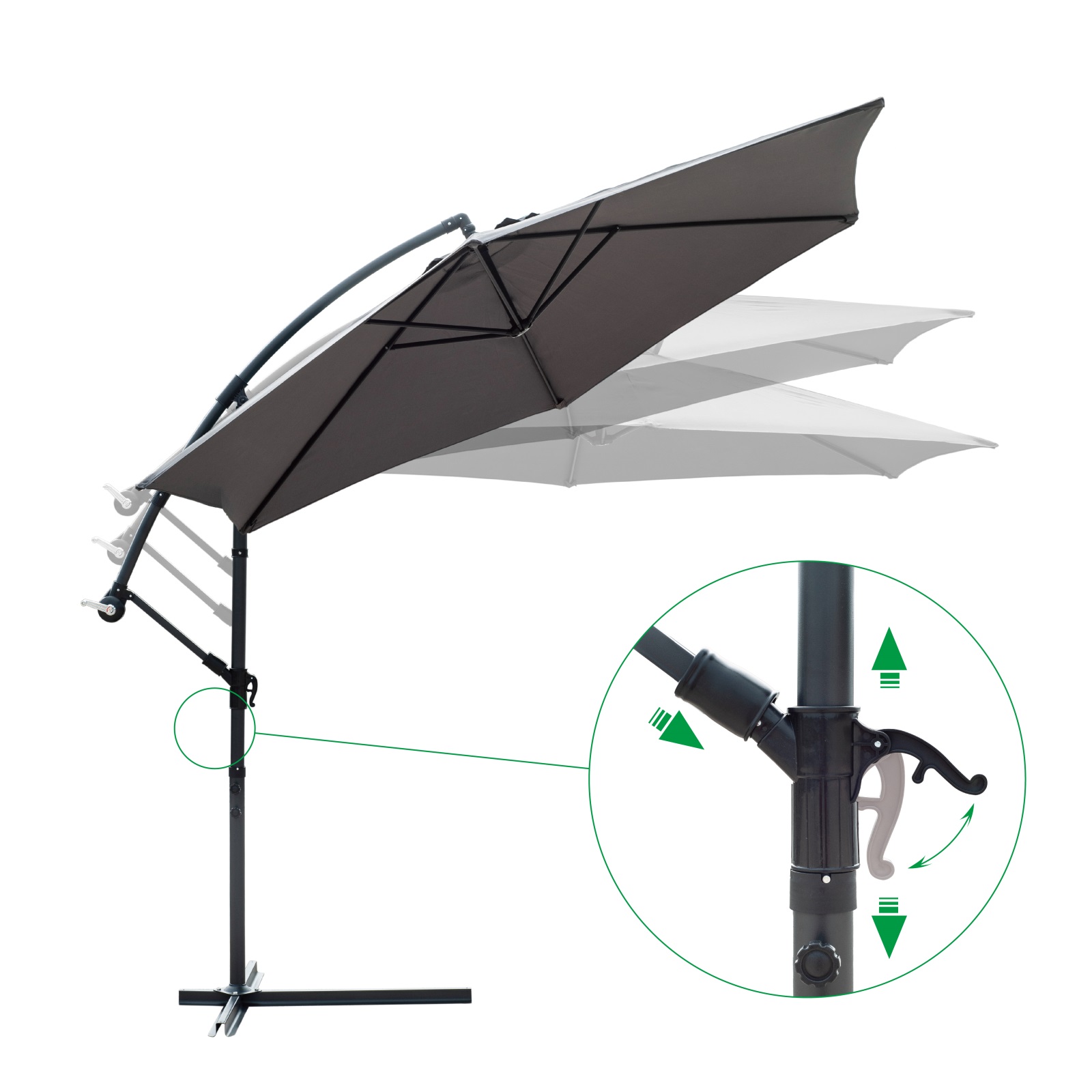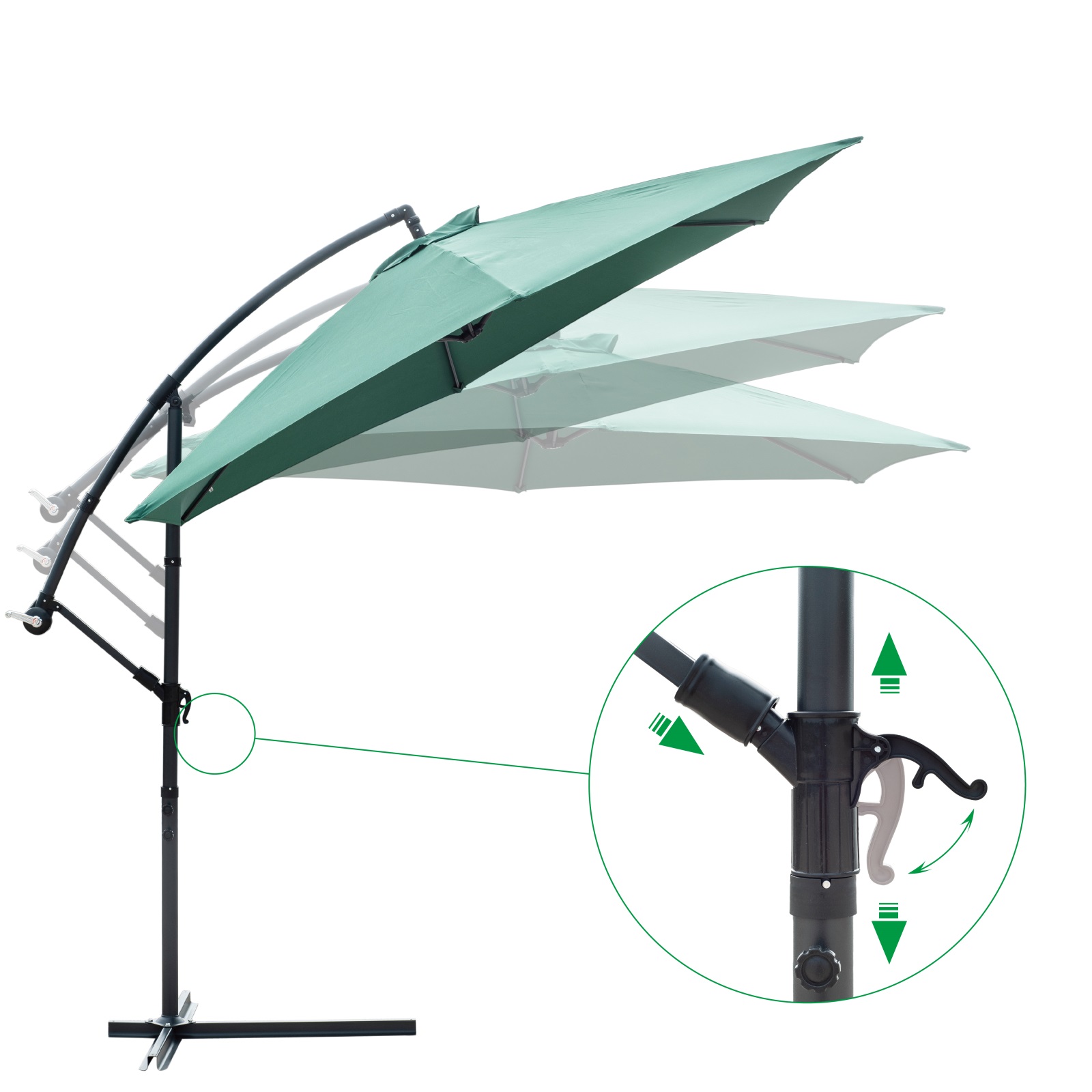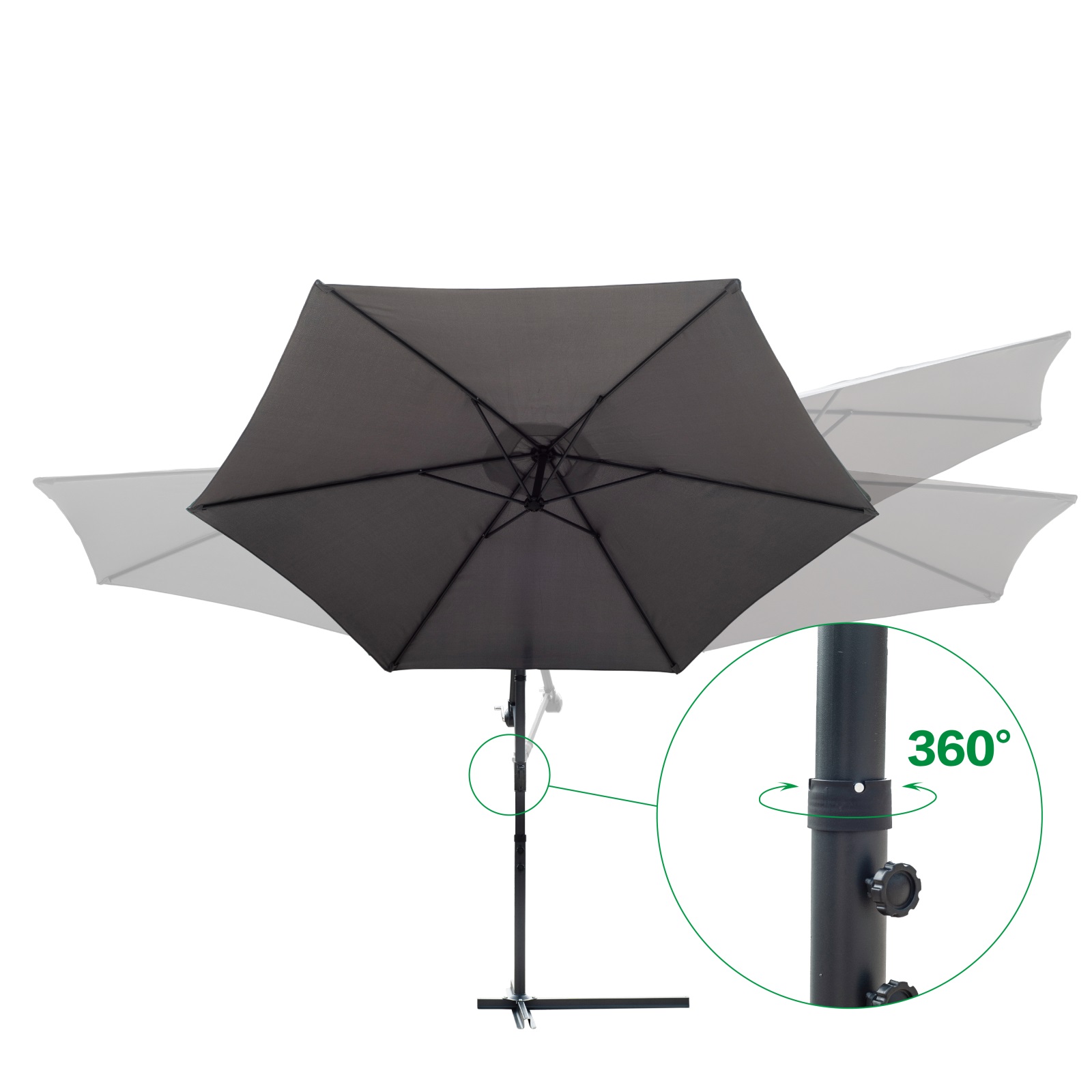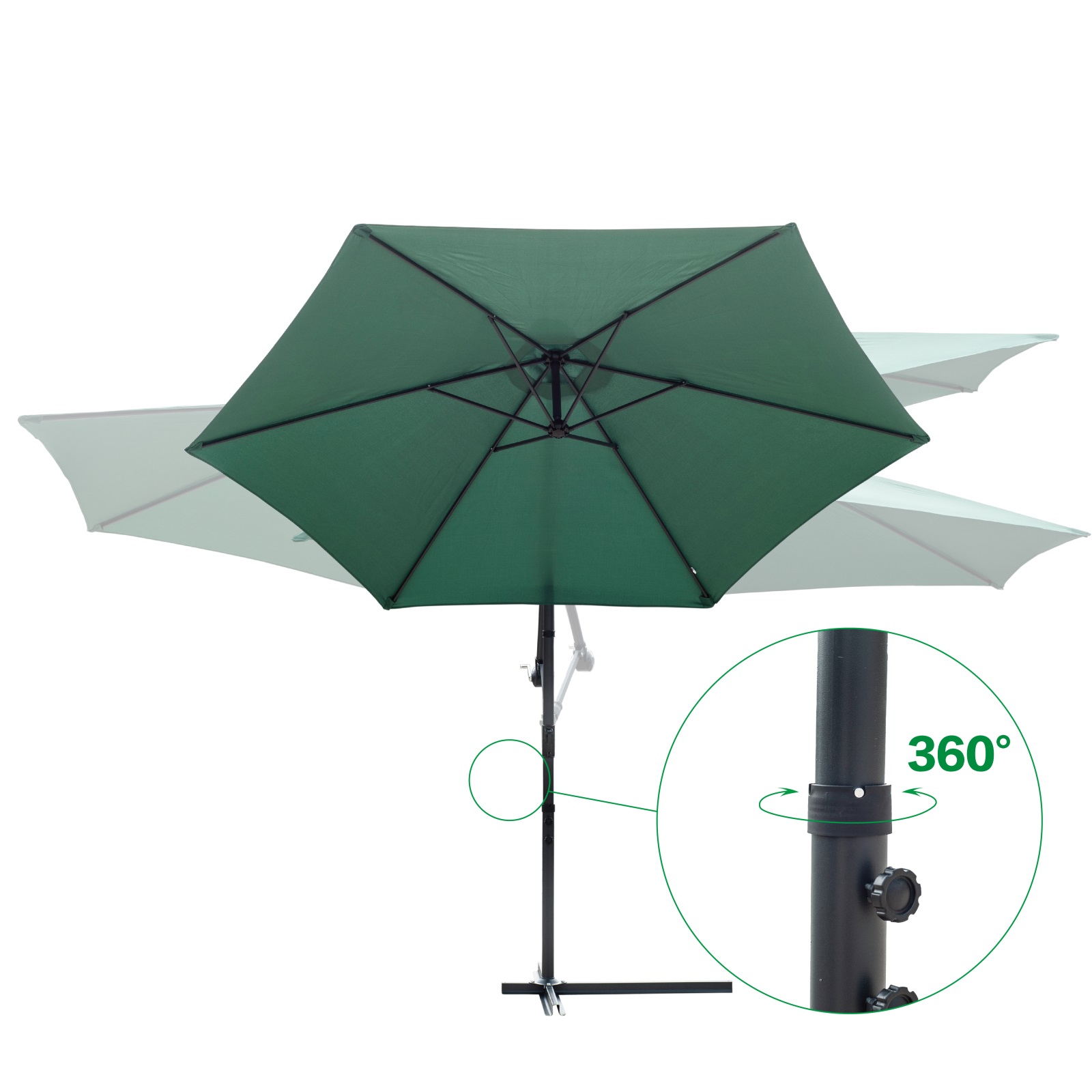 Equipped with crank handle | 360 degree rotatable | 6-rib support structure |
