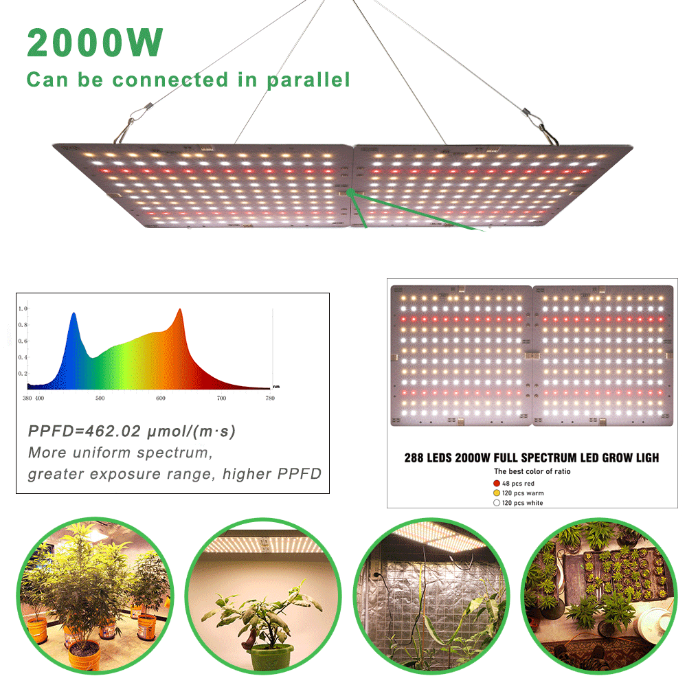 1Pcs * 2000W LED Grow Light + Hanging Kit + US Power Cord