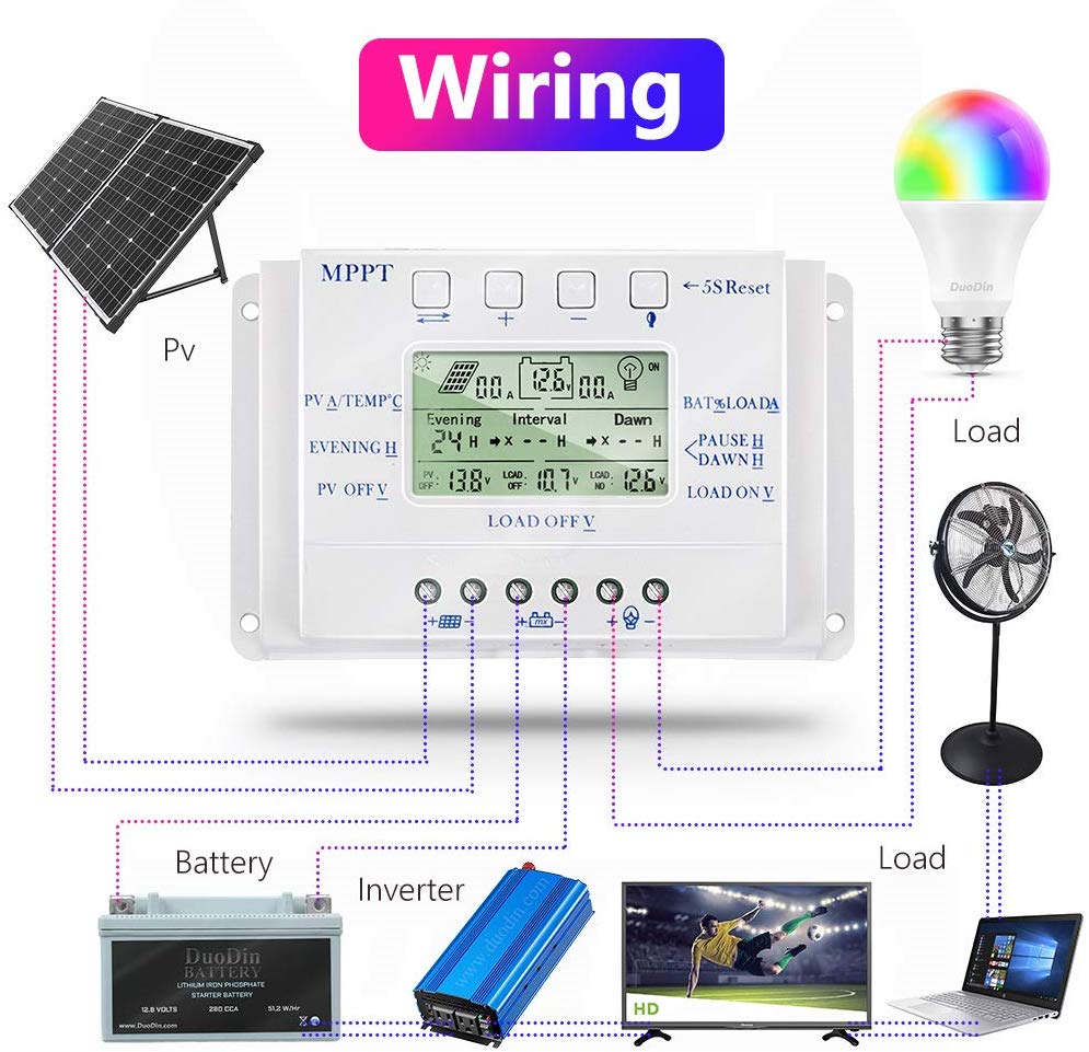 10A 20A 30A 40A Solar Charge Controller MPPT Battery Regulator 12V/24V 3 Timing