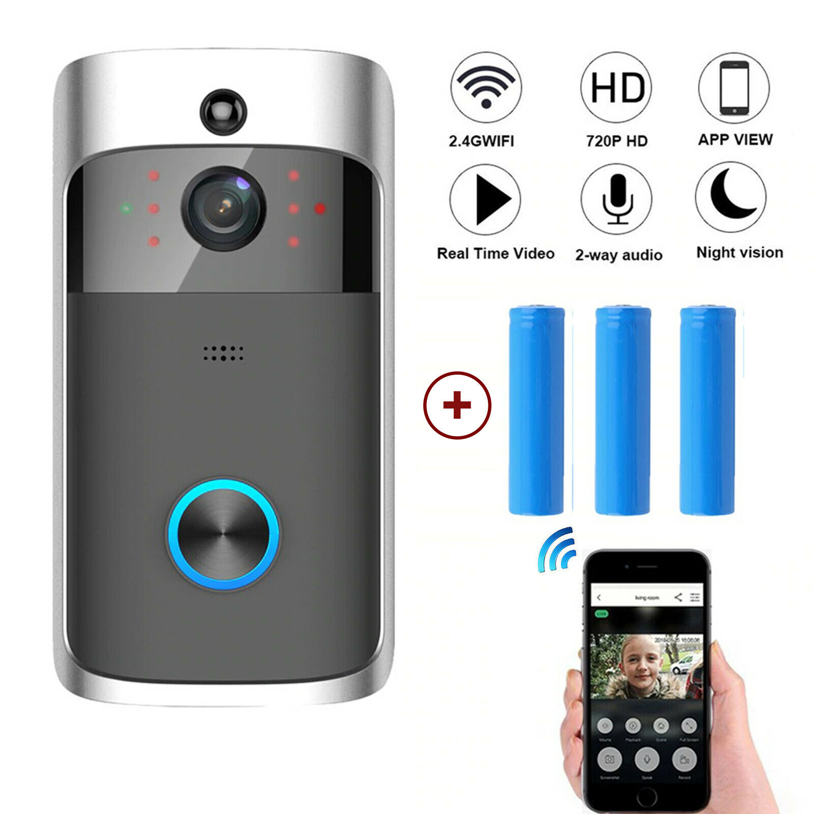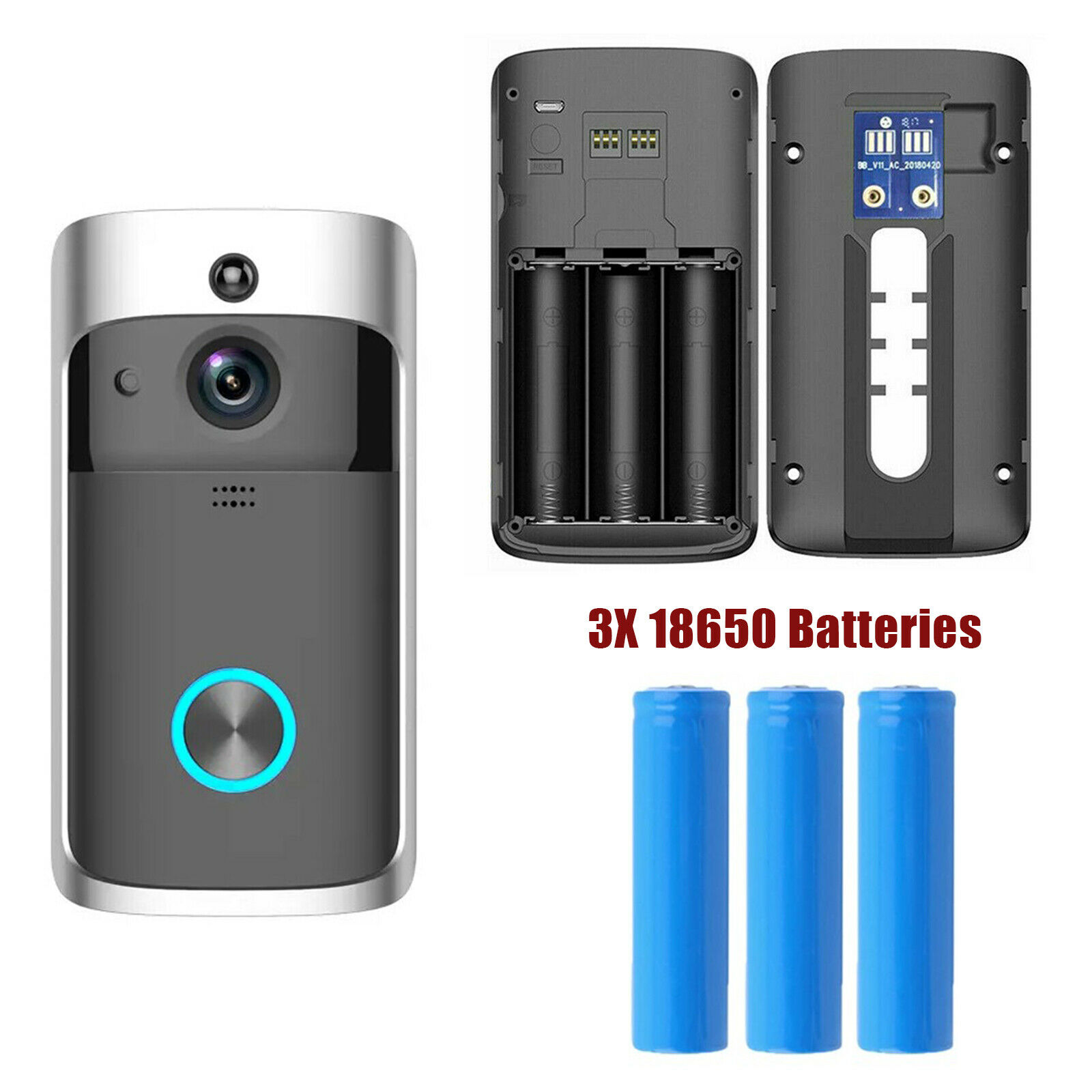 * Low Power Consumption: This doorbell needs three 18650 batteries, the Li-on battery features with lower power consumption and ultra-long endurance, which can be used for one to three months.