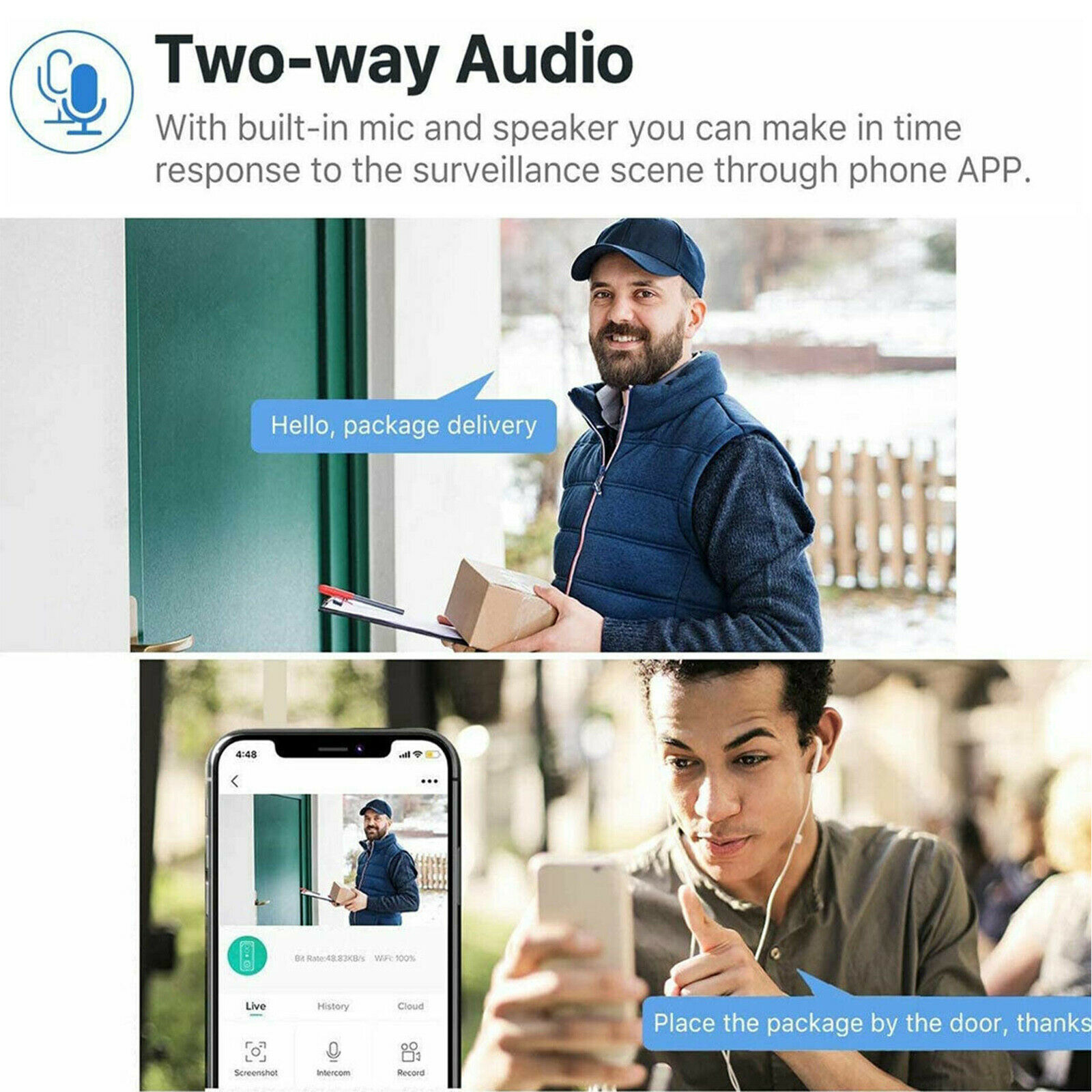 Clear Two-way Audio: The two-way audio is clear with echo removal and noise cancellation technology, so that you can talk and hear clearly with your visitors.