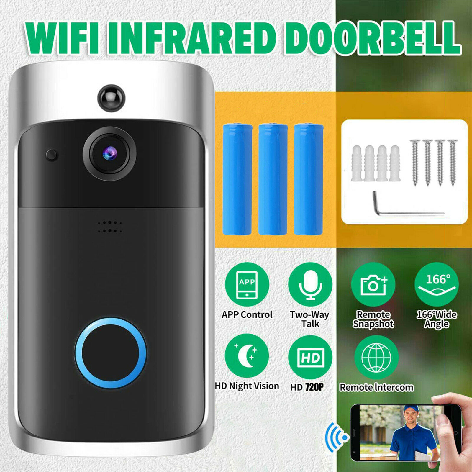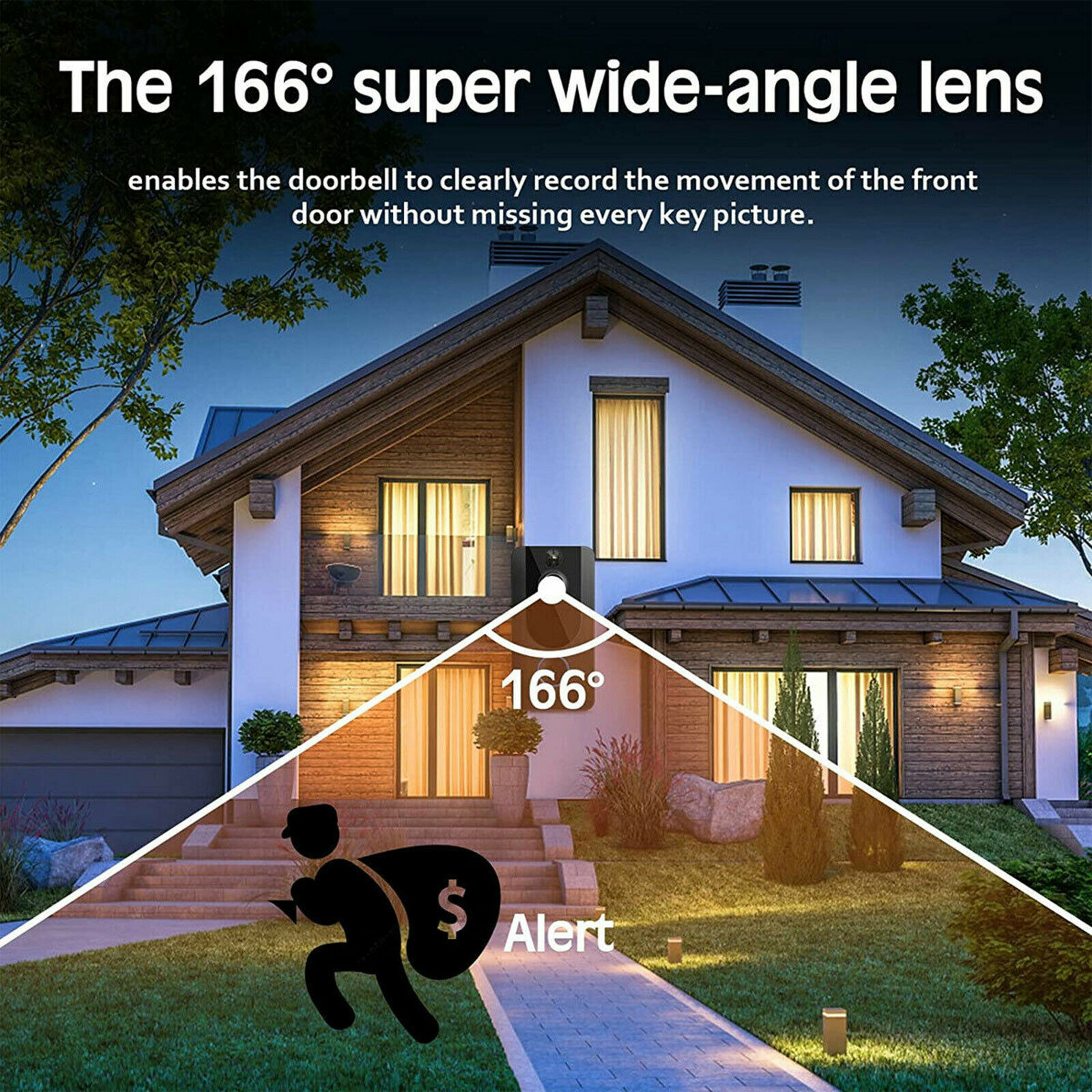 HD Quality Image With 166° Wide Angle View: This doorbell contains a 1.7mm lens with 720p image and 166° wide angle view. You can see clearly who your visitors are from it.