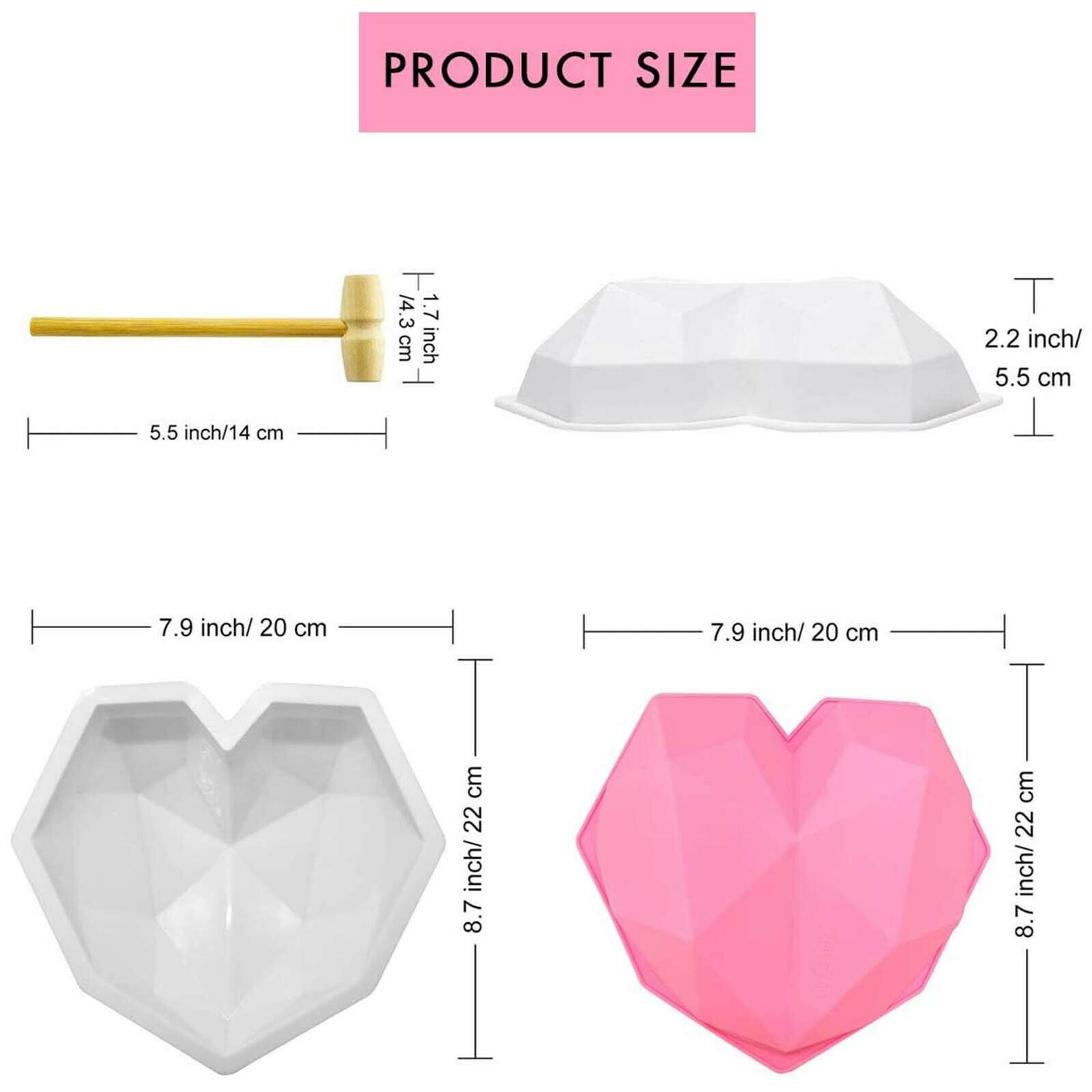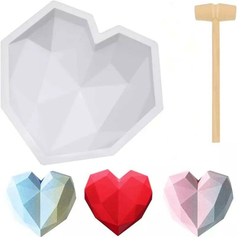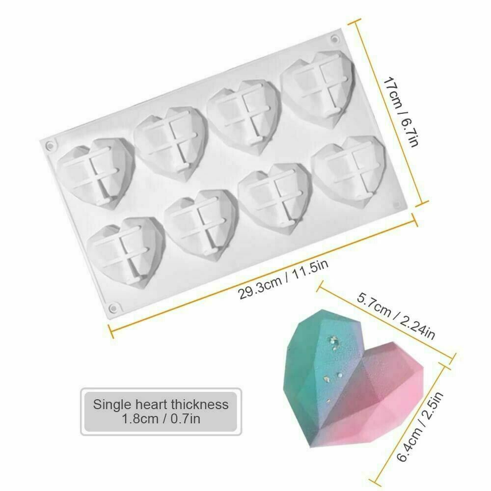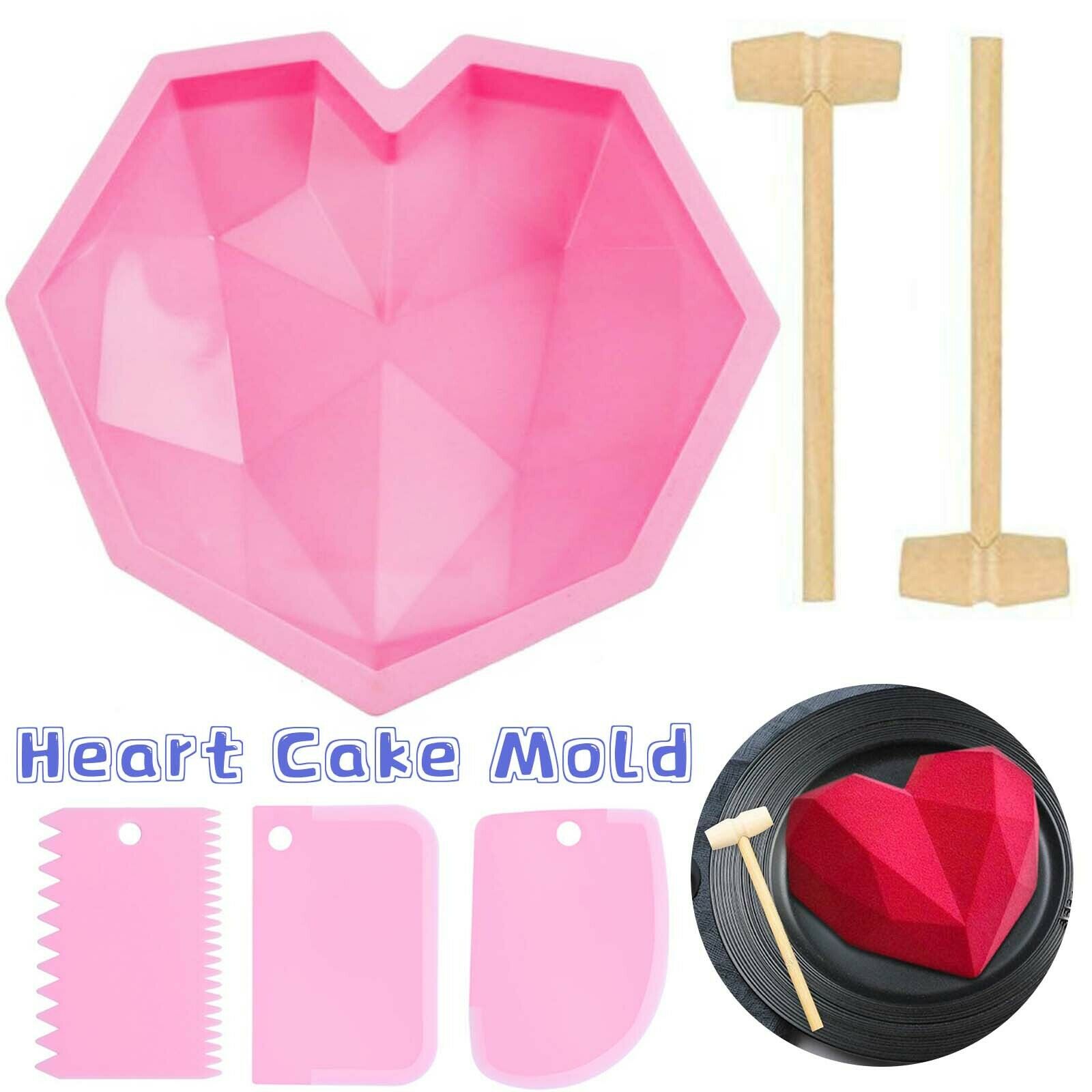 3D Large Geometric Heart Shape Silicone Mould Chocolate Cake Baking DIY Mold