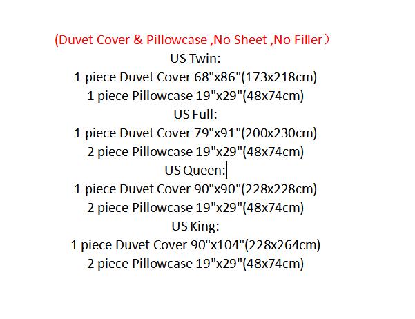 • US Full: 1 piece Duvet Cover 79"x91"(200x230cm)