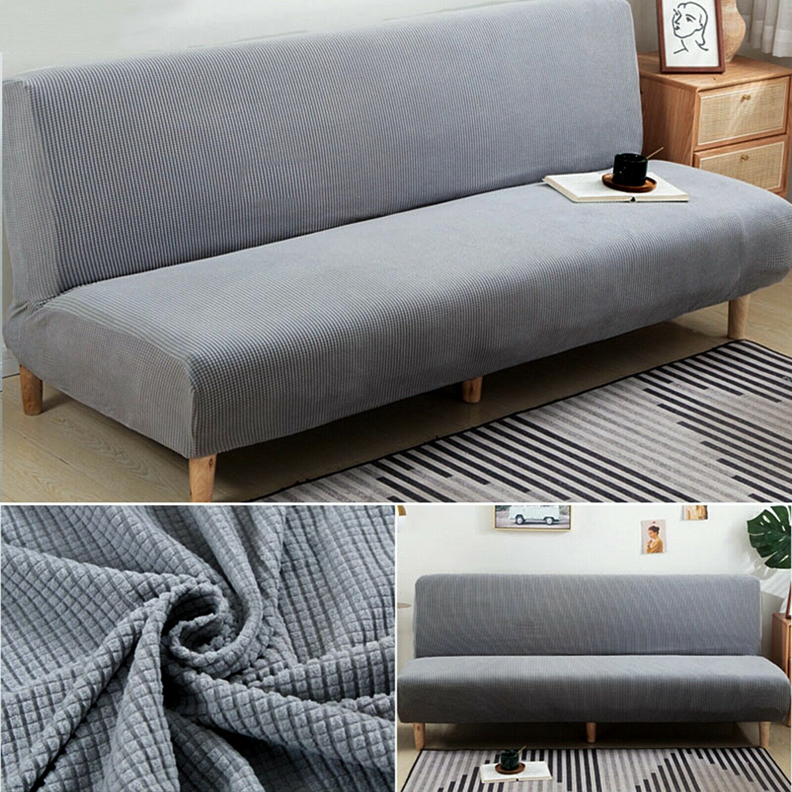 Sofa Cover Armless Jacquard Spandex Slipcover Folding Couch Protector