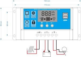 1.Schließen Sie den Akku an den Laderegler an - Plus und Minus. 2.Schließen Sie das Photovoltaikmodul an den Regler an - Plus und Minus. 3.Schließen Sie den Verbraucher an den Laderegler an - Plus und Minus. Die umgekehrte Reihenfolge gilt bei der Deinstallation! Eine falsche Reihenfolge kann die Steuerung beschädigen! |
