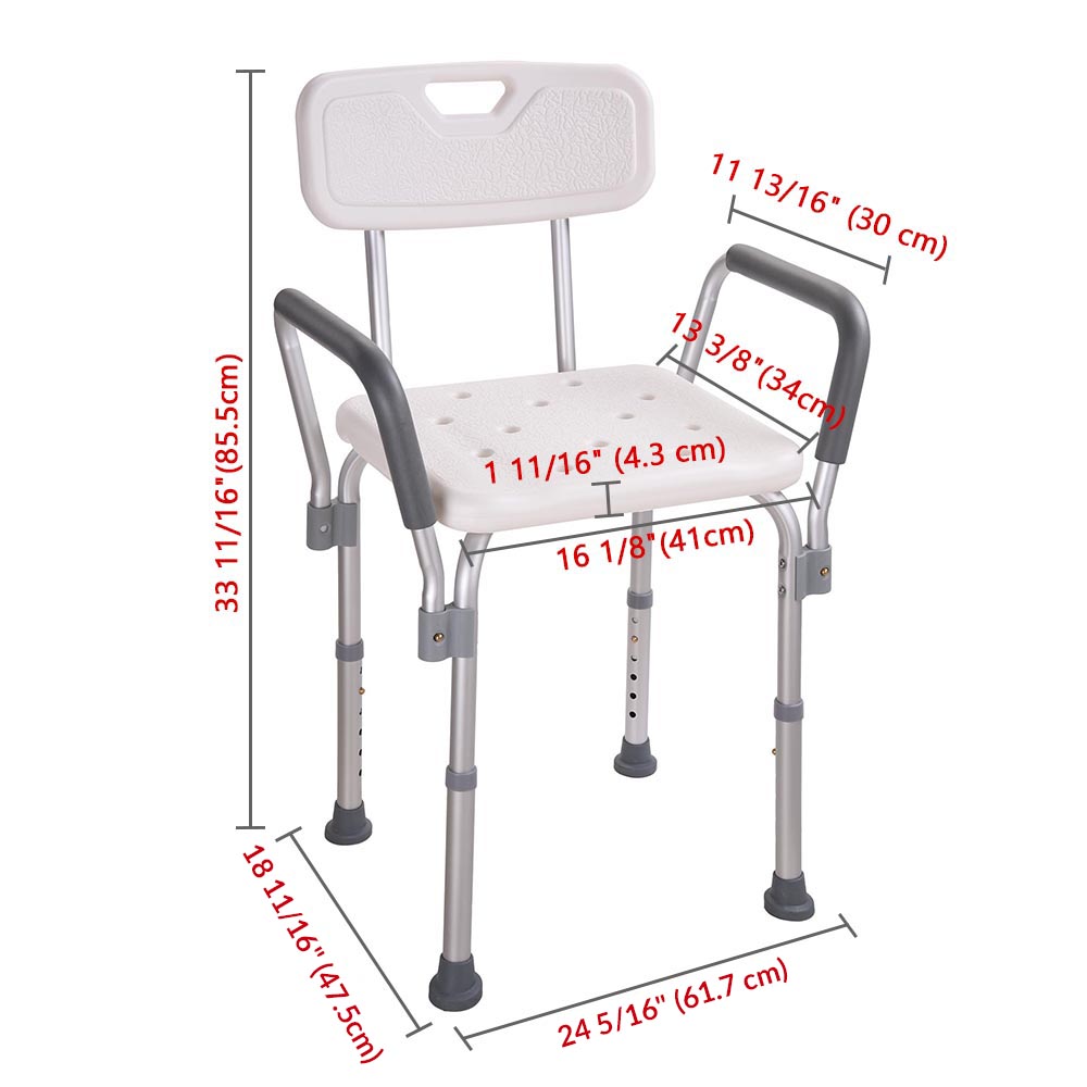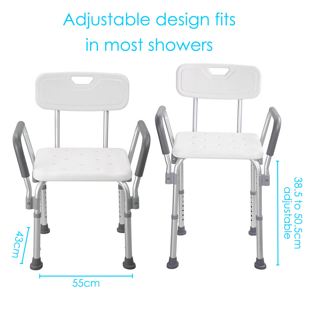 Aluminium Adjustable Medical Shower Aid Chair Bathtub Bath Seat Stool Arms Back
