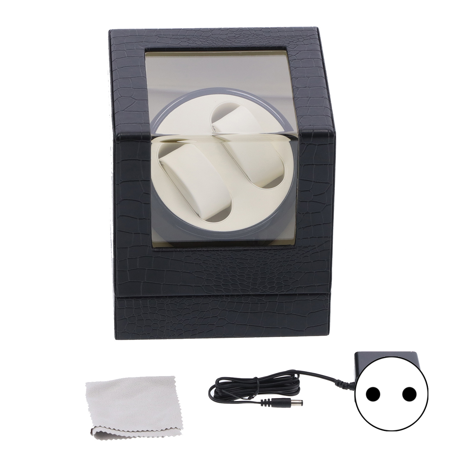Features: 2 watch position, black PU leather pattern exterior, automatic stop when opening the lid