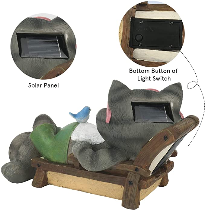 Jeffrey-太阳能灯树脂躺椅猫雕塑M