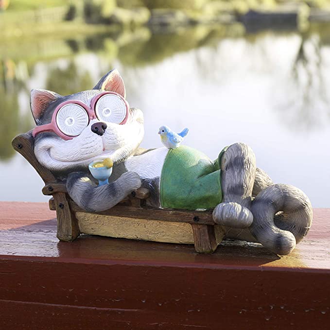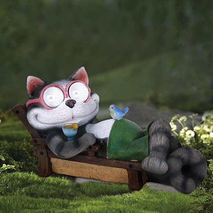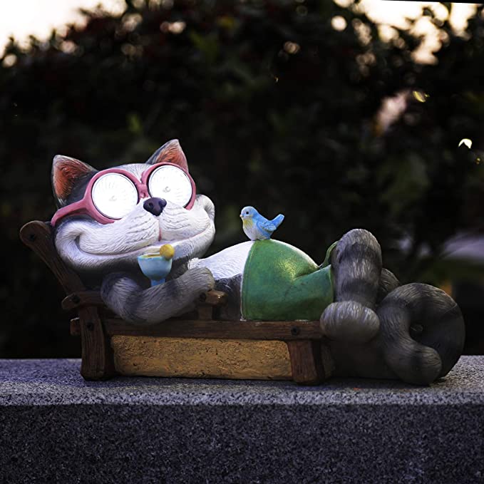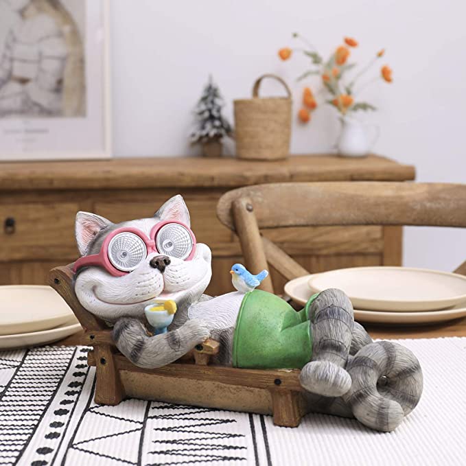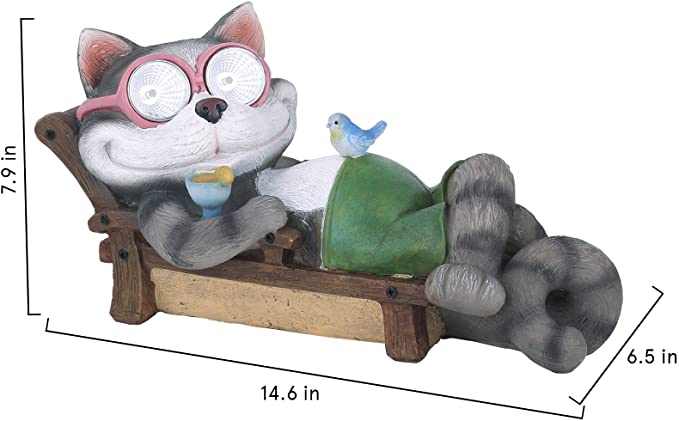 Lovely Companion - Take this cat from the workbench to the porch for daily joy. Featuring a large-framed sunglasses, this kitty gets out of the holiday spirit by posing for complete relaxation with bird friends. An ideal gift for cat lovers. Dimensions: 14.6"L*6.5"W*7.9"H