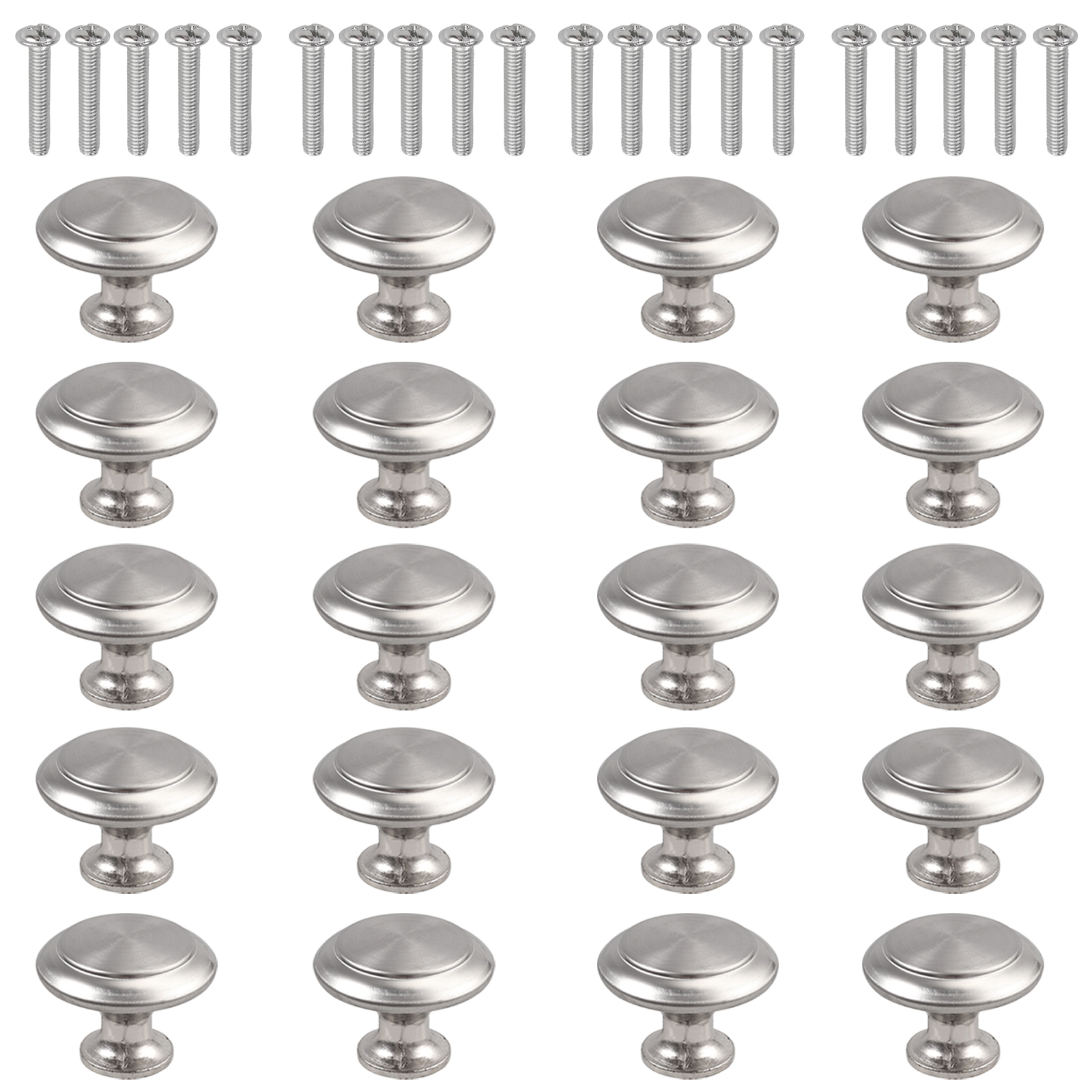 20Pcs Cabinet Knobs Round Mushroom Shape Pull Handle Stainless Steel Brushed 30mm for Drawer Door Cupboard Wardrobe